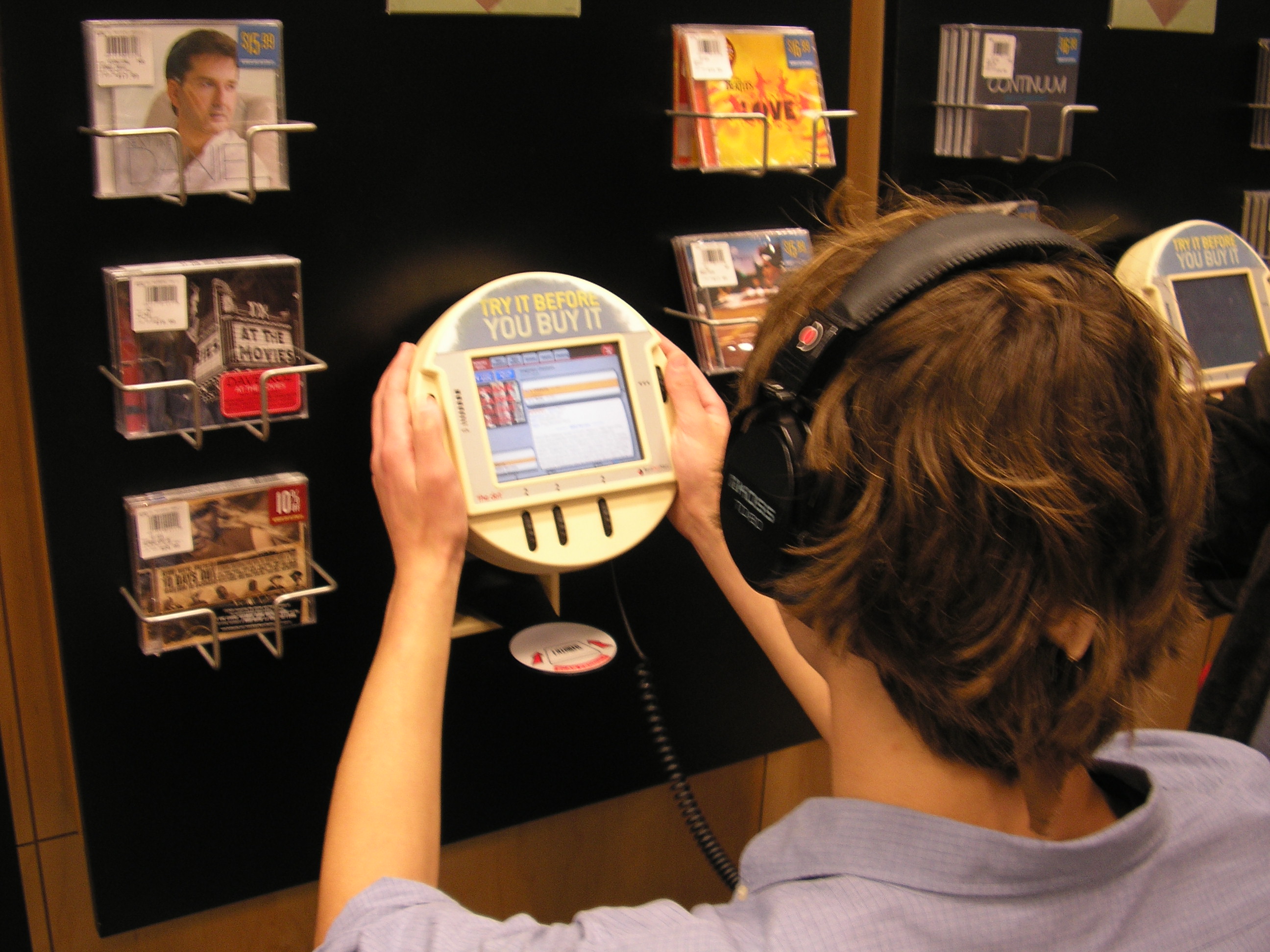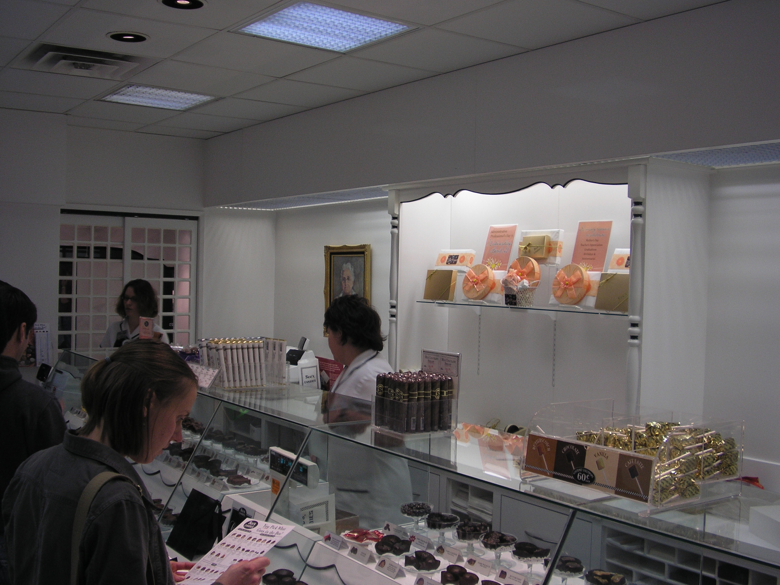 One thing that I was beginning to notice was that in the mall there is an extraordinary amount of sound, and that it was extremely hard to focus on something in particular. They led me into a See's Candy shop to get a free sample, and immediately I heard conversations start up, and the lady at the counter asked, and we said we were experimenting on how it feels to be blind. I am not sure what the flavor of the candy was, but it was good. we wandered around a while before Mr.T. decided that he wanted to go into Barne's & Noble's, so I followed, and I soon was able to focus on the situation as it was very quiet in the store. They led me around, and had me take a few pictures of things, which they thought were pretty funny. They also had me listen to some weird music, and what I think was a movie preview for God knows what.