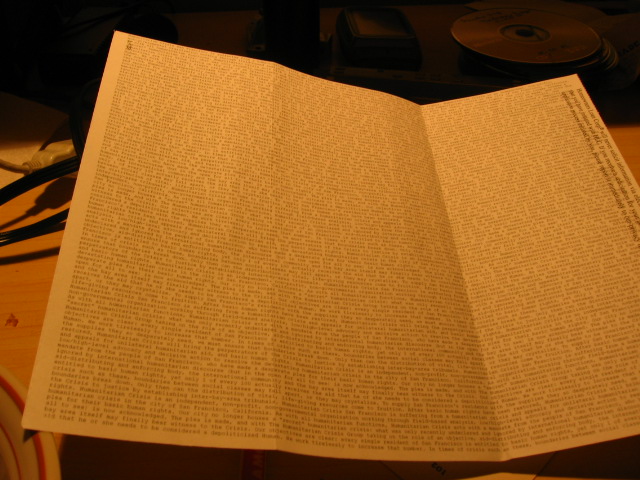 My non-standard receptacle is the overview of Humanitarian Crisis. I didn't want to put my wealth and identity in just an object for a few days, so I thought this would be interesting. The text is printed on the back of a PLEASE LET US LOAN YOU MONEY THEN BREAK YOUR KNEES AS WE DEMAND IT ALL PLUS MORE BACK junk mail letter. Took me around 20 minutes of being anal about the cutting and taping of the whole thing before I had something I was happy with.