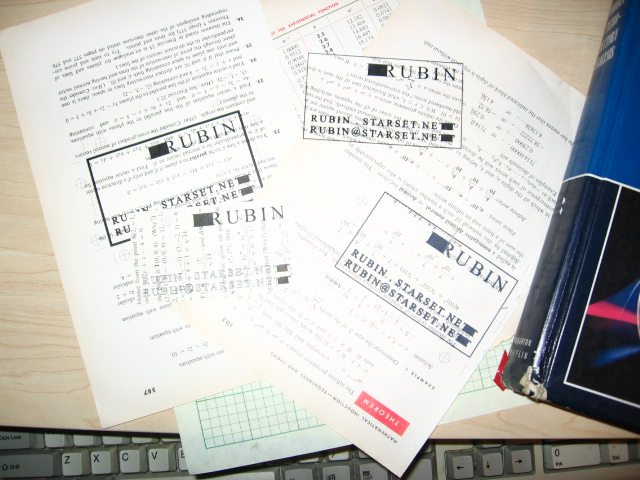 About an hour or two later, and a whole lot of bitching from my printer, I had some pretty good ideas of what I wanted to take down to Kinkos for a transfer and reproduction to harder card stock (school text books don't really have that kind of I want to put this in my pocket feel of paper). The last image listed is the better out of the lot I think. It was kind of a pain finding pages with text I thought would come out good with other things printed on top, only to find out I was totally wrong, or the printer had an alternate plan on spacing.