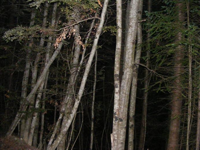 Oh, and I decided that I would at least have a go at "deepest darkest night" so I headed off into the forest nearby. You will have to excuse the quality of the photos there, I was covering my eyes to preserve my nightsight for what little light there was. As a result I just pointed the camera in a random direction and waited til I heard the flash... It was actually fun to go night walking again. I haven't been truely night-walking since I walked 27 miles across the hills a few years ago, following the southern cross south without any natural lights. You never really lose the skills.