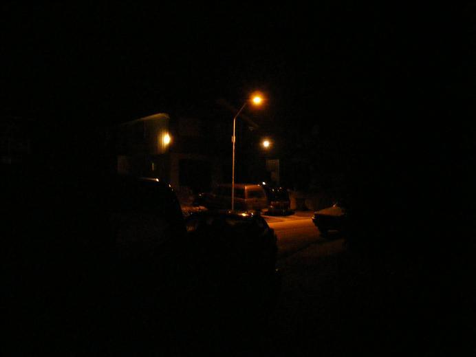 Just before I continue, I would like to just mention the cultural imperialism embodied in this task. I mean really, "take photos" in the "deepest darkest night". Only a townie would assume that there would be light enough for photos in deepest darkest night. Fortunately I don't live on the farm anymore (where you literally can't see the hand at the end of your arm on a dark night - sometimes you can't even tell if you have your eyes open), so I could use the scattered streetlights to take some shots - but really...