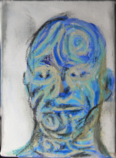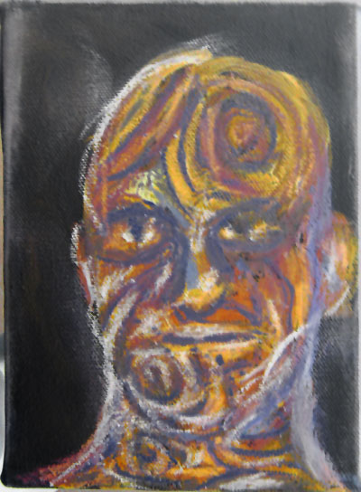 A portrait of Gadget's character using his photo as model. 5x7" Acrylic on Canvas with Oil Pastels.
