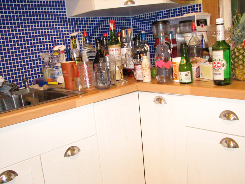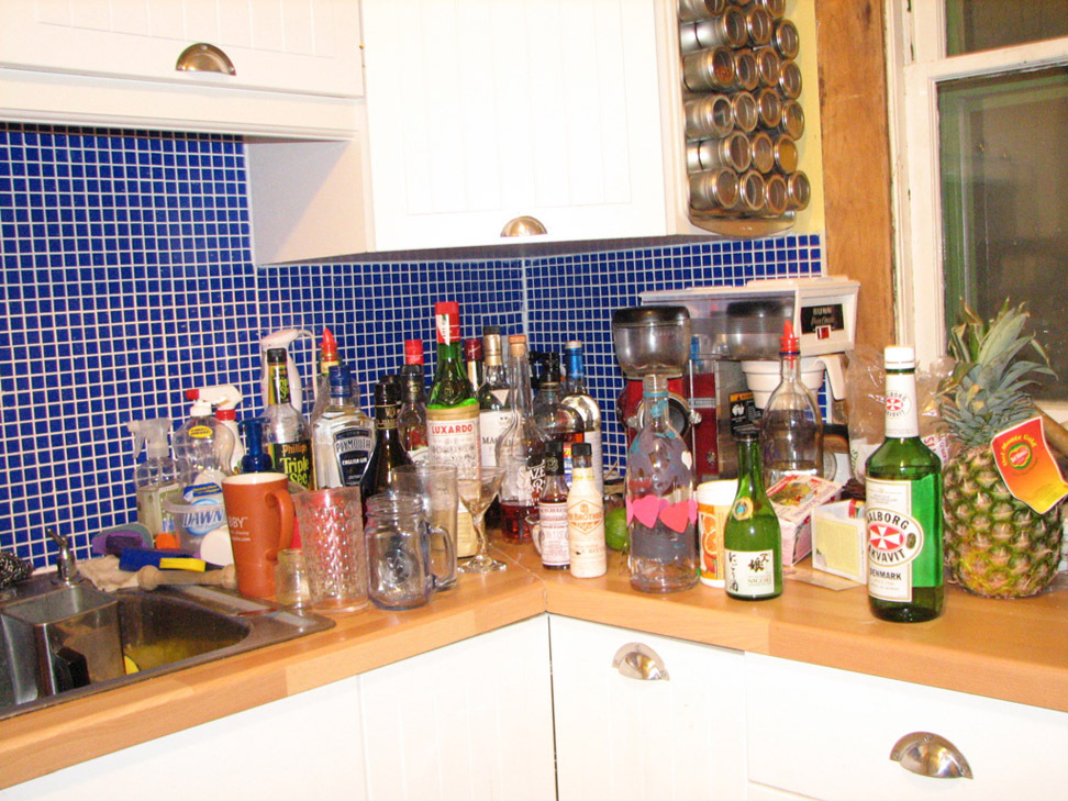 when I step back and look at it, I'm actually kind of mortified by the booze collection. But I *get* it now, how you can build up a big stockpile of the stuff if you are into making classic cocktails and experimenting. Still, it makes you wonder what they're teaching us at that seminary.