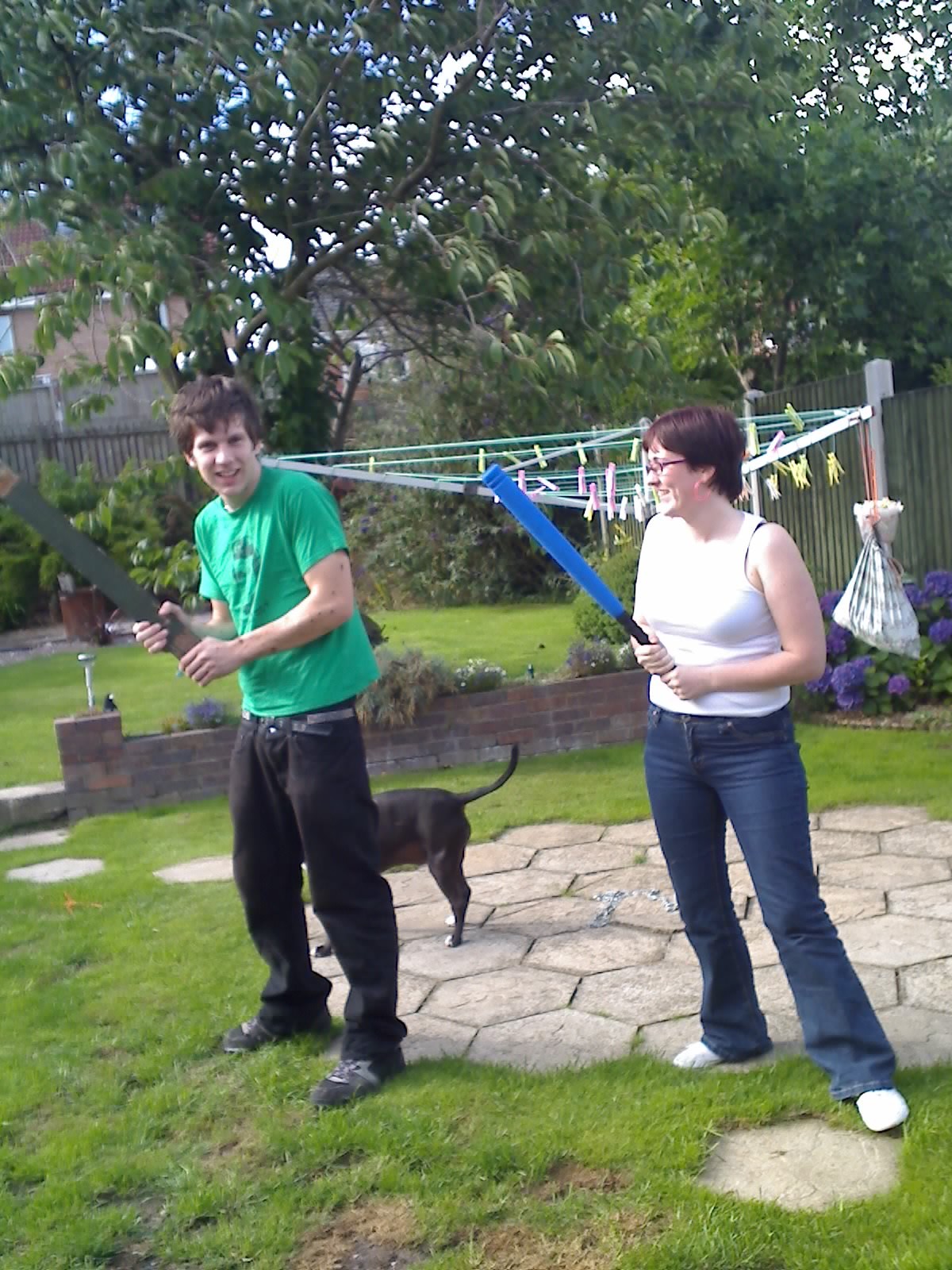 We found it quite difficult to take pictures of us hitting the objects so we took videos. The following videos are of the fairly low quality camera phone variety but still good fun :)