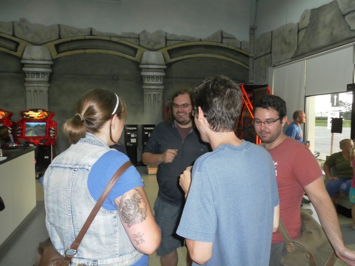 We waited for a while to go in, since we had to make two trips to get everyone. We ate some ice cream, chatted, played some of the arcade games, and bought our passes. The entire place was full of people I didn't know, and it was inevitable that we would be paired off with them.