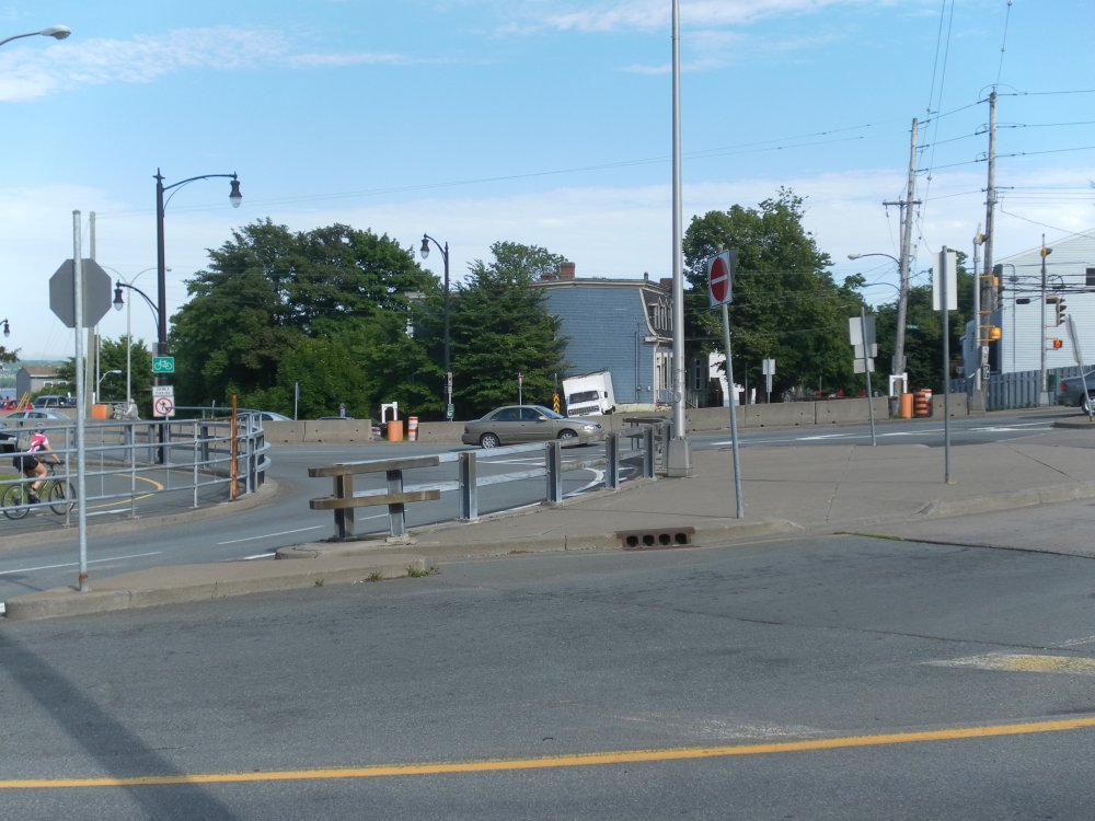 I stumbled out back into the sunlight, grinning a stupid little grin and wondering what my next option was. Well, Police HQ was a no-go, but that didn't mean there weren't officers out and about. Halifax isn't exactly a Cop Town, but it's rare to not see some representatives of the service patrolling (and, in rare cases, trying to catch those who choose to ride dirty). Surely one or two of them would have a minute to chat, instruct a law-abiding citizen in the proper way to conduct oneself. Sure enough, no sooner had I started biking down the street, than two police officers came ambling in my direction. I cheered silently at my good fortune, and hopped off my bike as I came to a halt. The police halted too, but to give directions to a rather loud passerby.