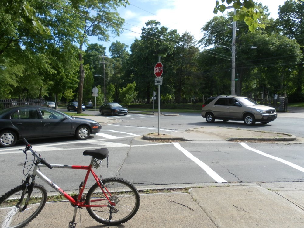 Both the graveyard and the public gardens are cordoned off by the same sort of black, wrought-iron fence, which lends a pleasing symmetry to the ride down Summer street, which runs perpendicular to Sackville and leads back through Spring Garden on the way to the University where I work. It's around here that the ride becomes easy, the hills level off, and I can take a nice breather as the Steed and I roll along in fourth gear.