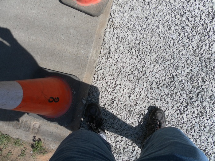 I leave the landing site of tomorrow and try to find my way back into today, but even my exit roads are incomplete, gaping scars in the landscape exposing the gravel lifeblood of the streets. Loud orange pylons cry out to passersby to avoid these pitfalls, but I'm in no mood to heed them.