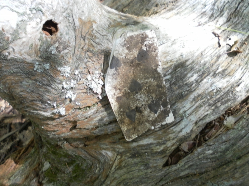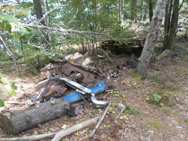 It wasn't the kind of treasure I was prepared to pack up and take home, but I dug it out of the ground and propped it on the carcass of the car, as a way of letting everyone know that whatever did this was probably out of commission for the near future. Ease some fears. I continued marching along the trail.
