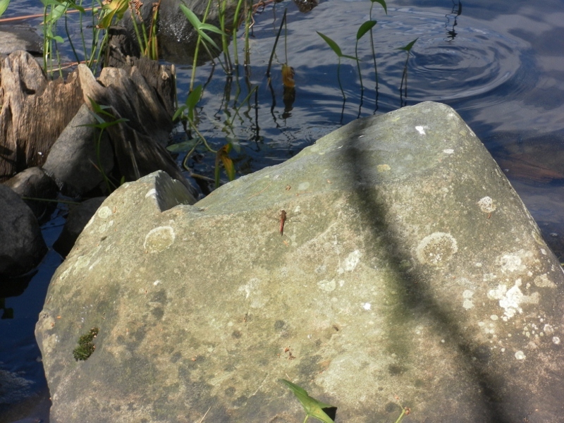 The water was peaceful and calm, and dragonflies flitted around the surface. A muskrat poked his head out of the water and dove back under just as quickly. Small fish darted just out of sight, just out of camera range. It was somewhere just shy of idyllic.