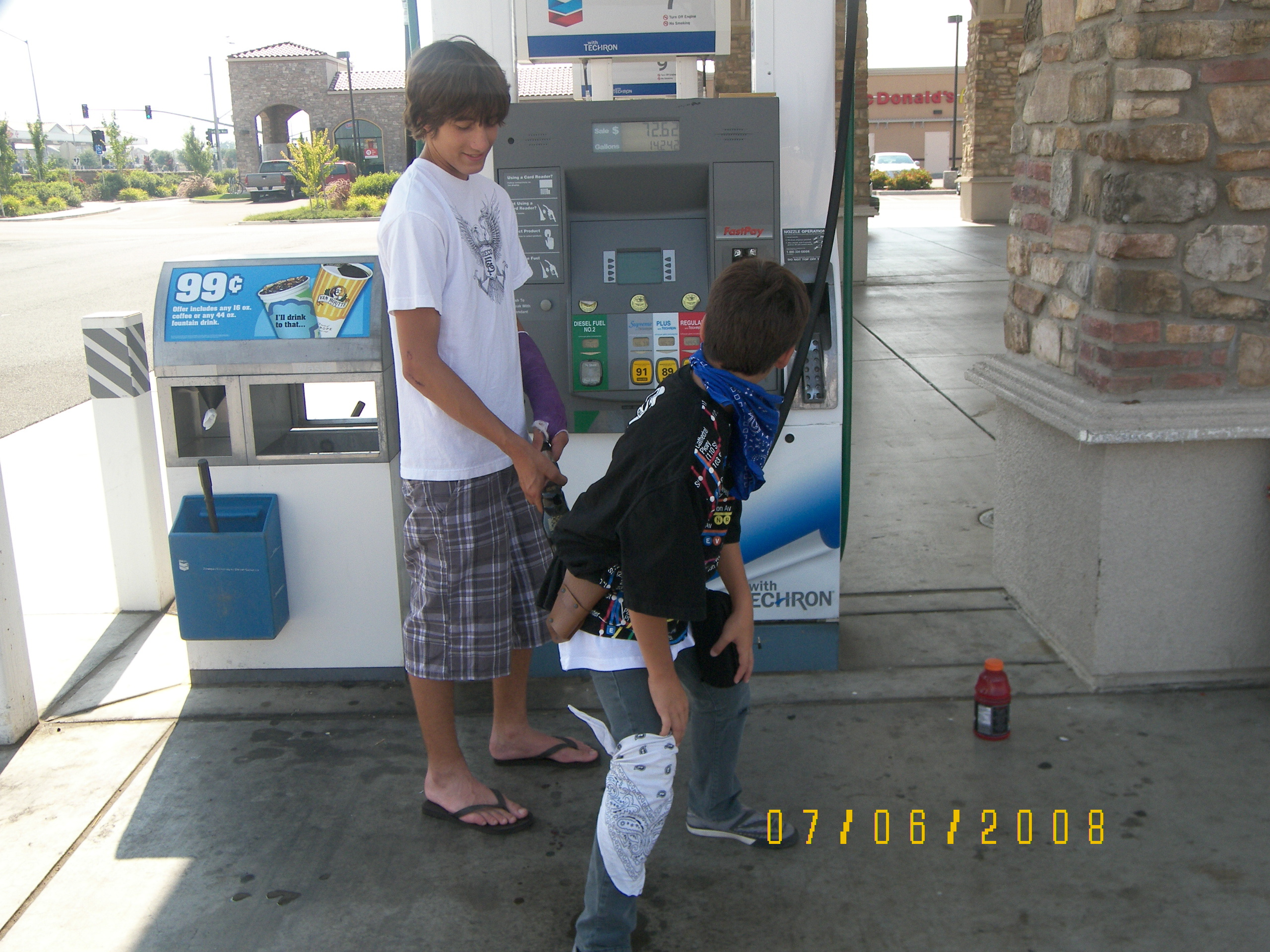 From the bank we proceeded on to the gas station to fill up. We won't go into detail where his gas cap is, you can use your imagination.
