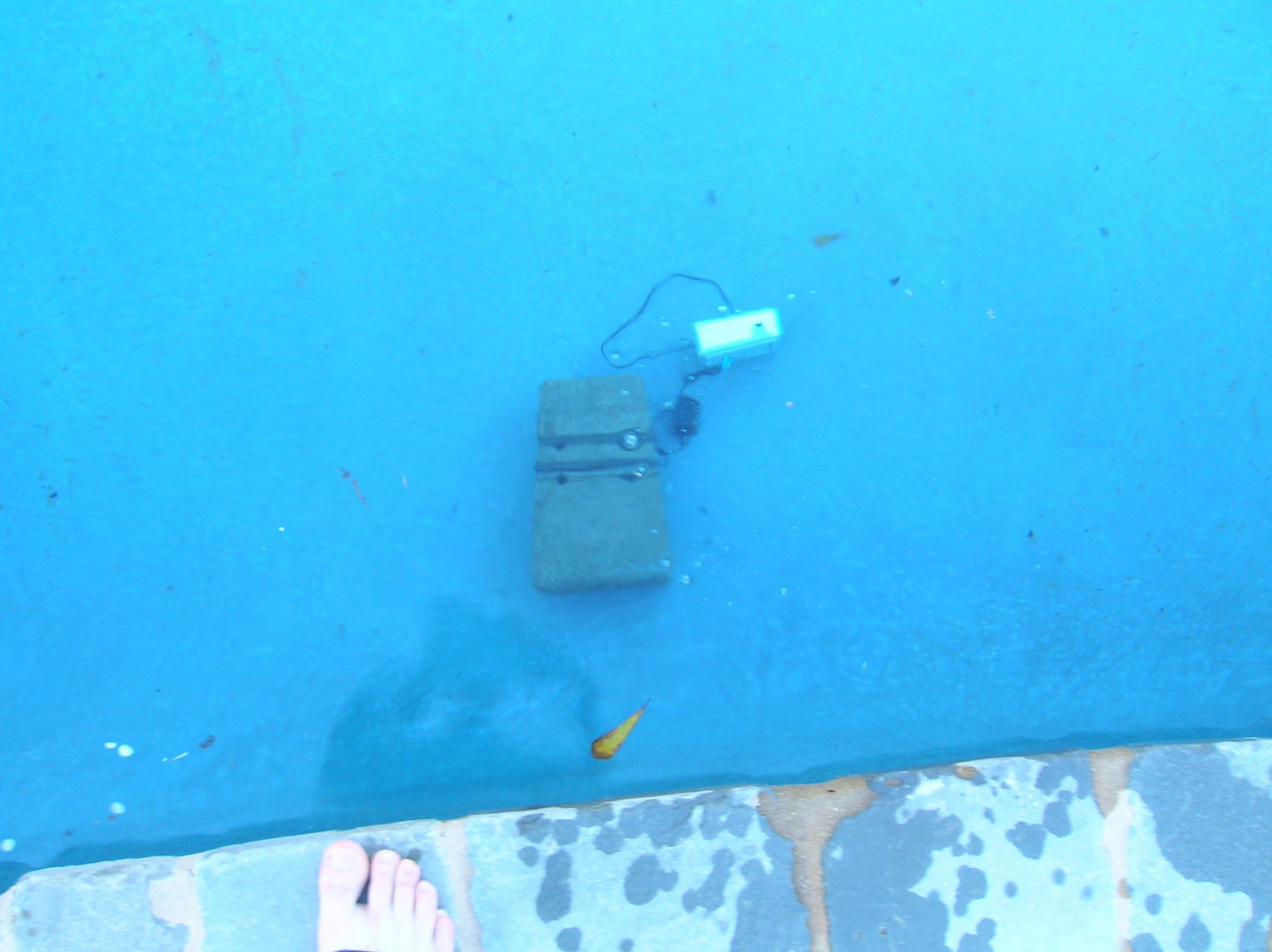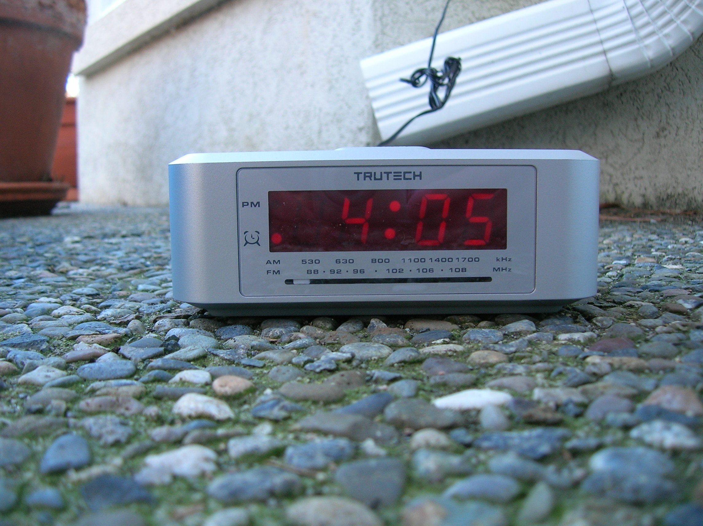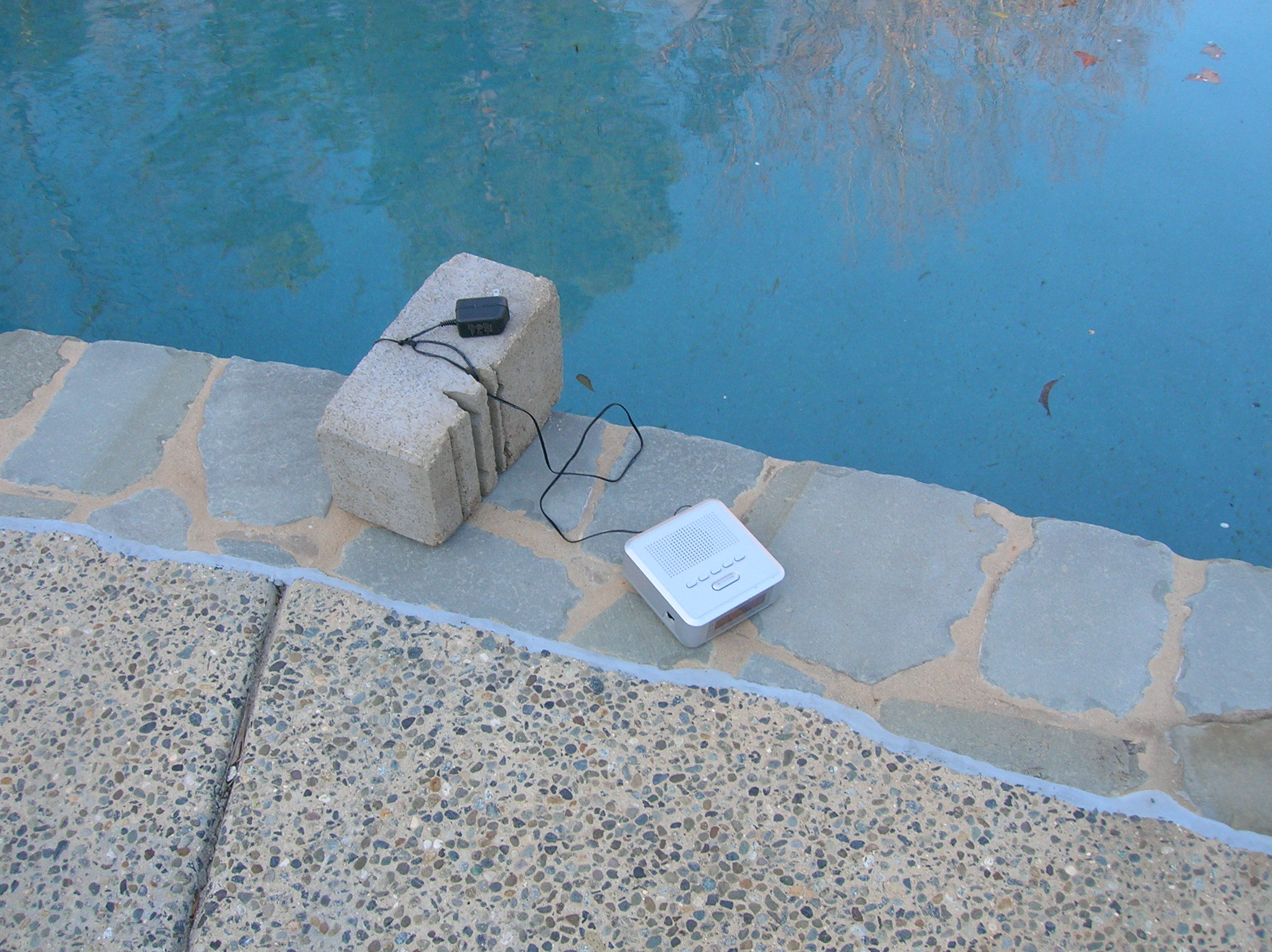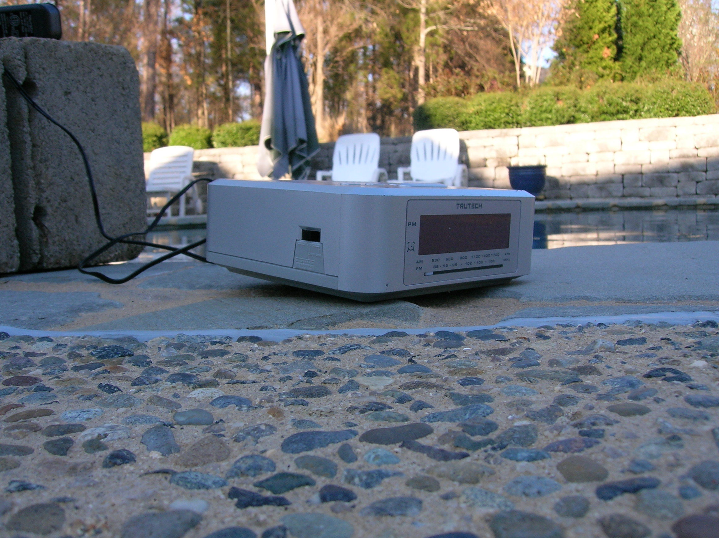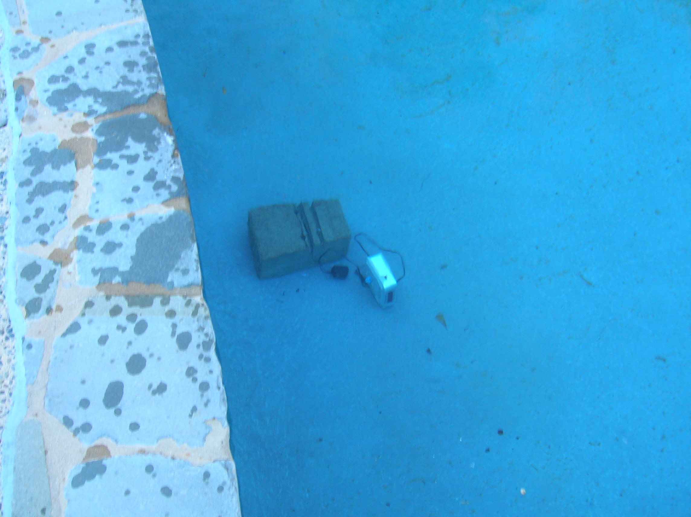 The cord of the clock was really convenient to tie it around something heavy, and I found a huge cement brick that had fallen off of a wall. I kicked the brick into the water, and the clock was gone. Sadly, swimming pools don't make things go away for a long time as much as a real body of water would, but I can just hope that nobody looks in the swimming pool for a couple years.