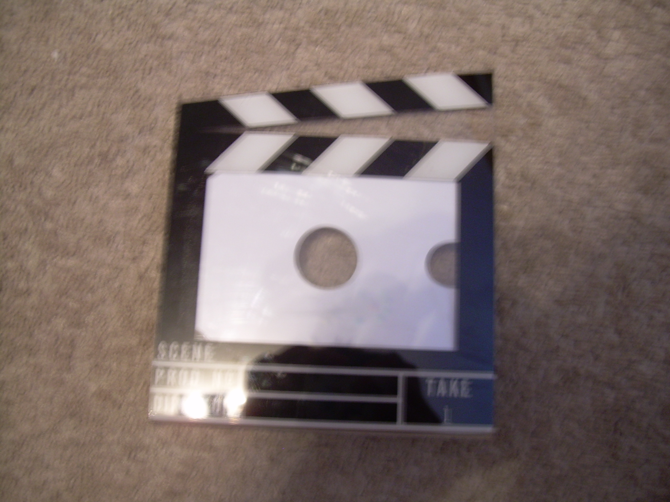 1) I have a bunch of movie-board shaped picture frames left over that I once used as party favors. I ripped off the backing, and, viola! Ready for this task.