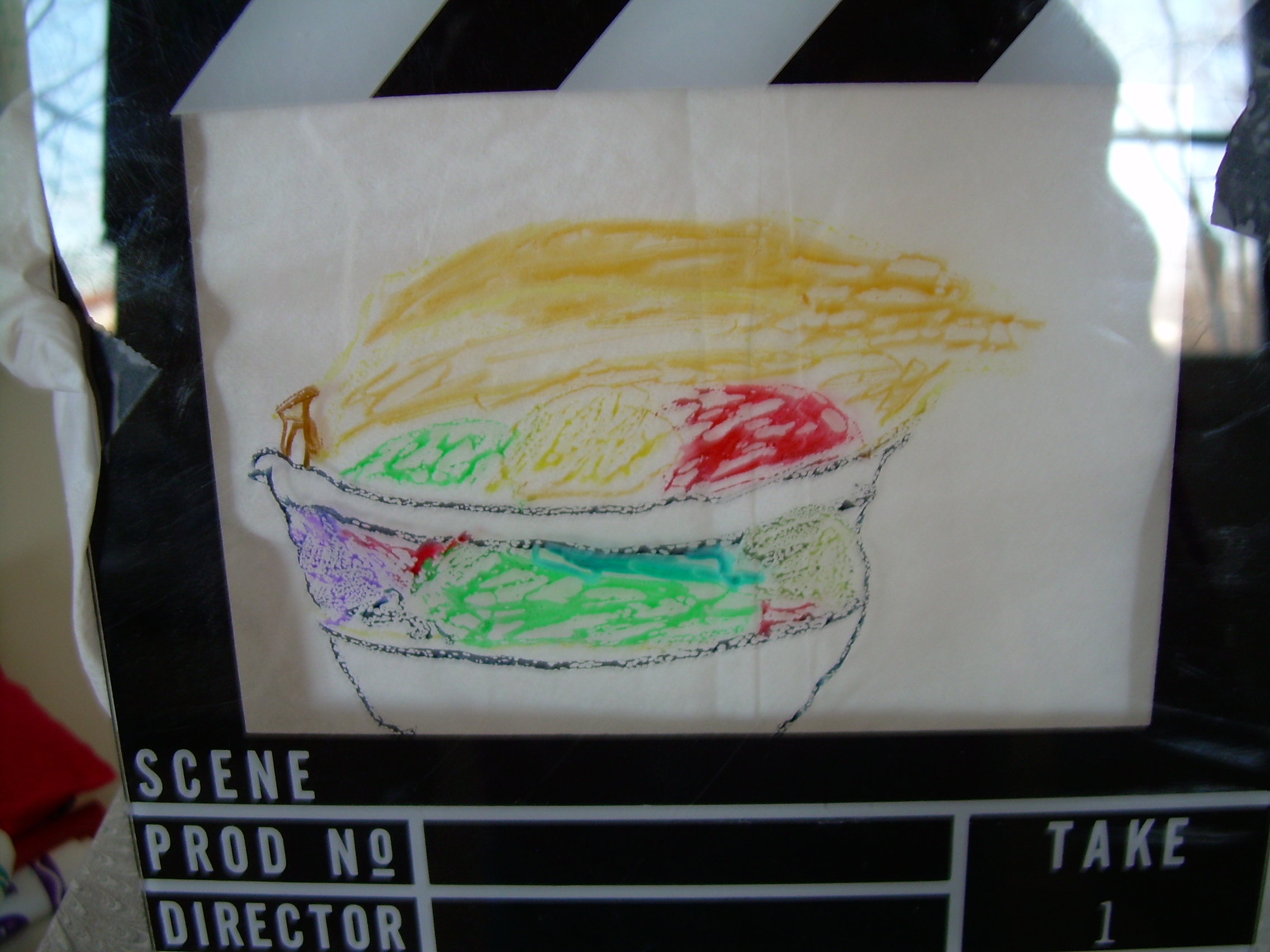 3) Armed and ready, I drew the fruit on the frame.