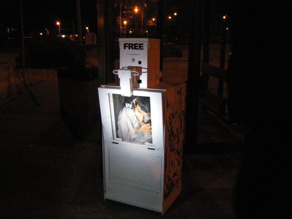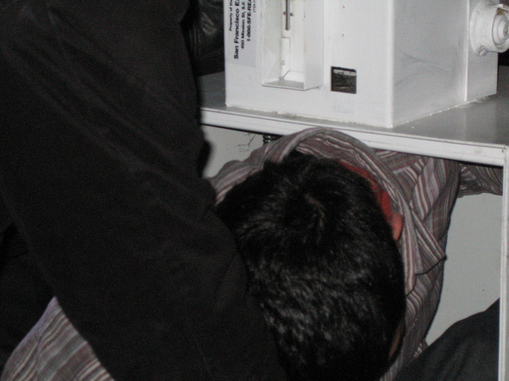 Rubin: No better way to spend a Tuesday night. Alex and I ended up finding parking at around 7:10. I spazed out searching for a working ATM, as I totally forgot that the bus ride would be charge free. My highlights for the night were; 1) Meeting a fat chunk of awesome SF0ers, 2) Crazy buildings of the future from the past, 3) Building a bridge between two structures, 4) "Everyone turn and wave at the guy in the window!" 5) Amazing view of everything, 6) SF0 Humanitarian Crisis news stand. We left treasure, we returned with memories of a reforgotten place. Flickr set.