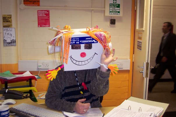 This is me at work dressed as a panda. The costume was lying around so I popped it on. You'll see I'm wearing my name tag so I'm technically working.