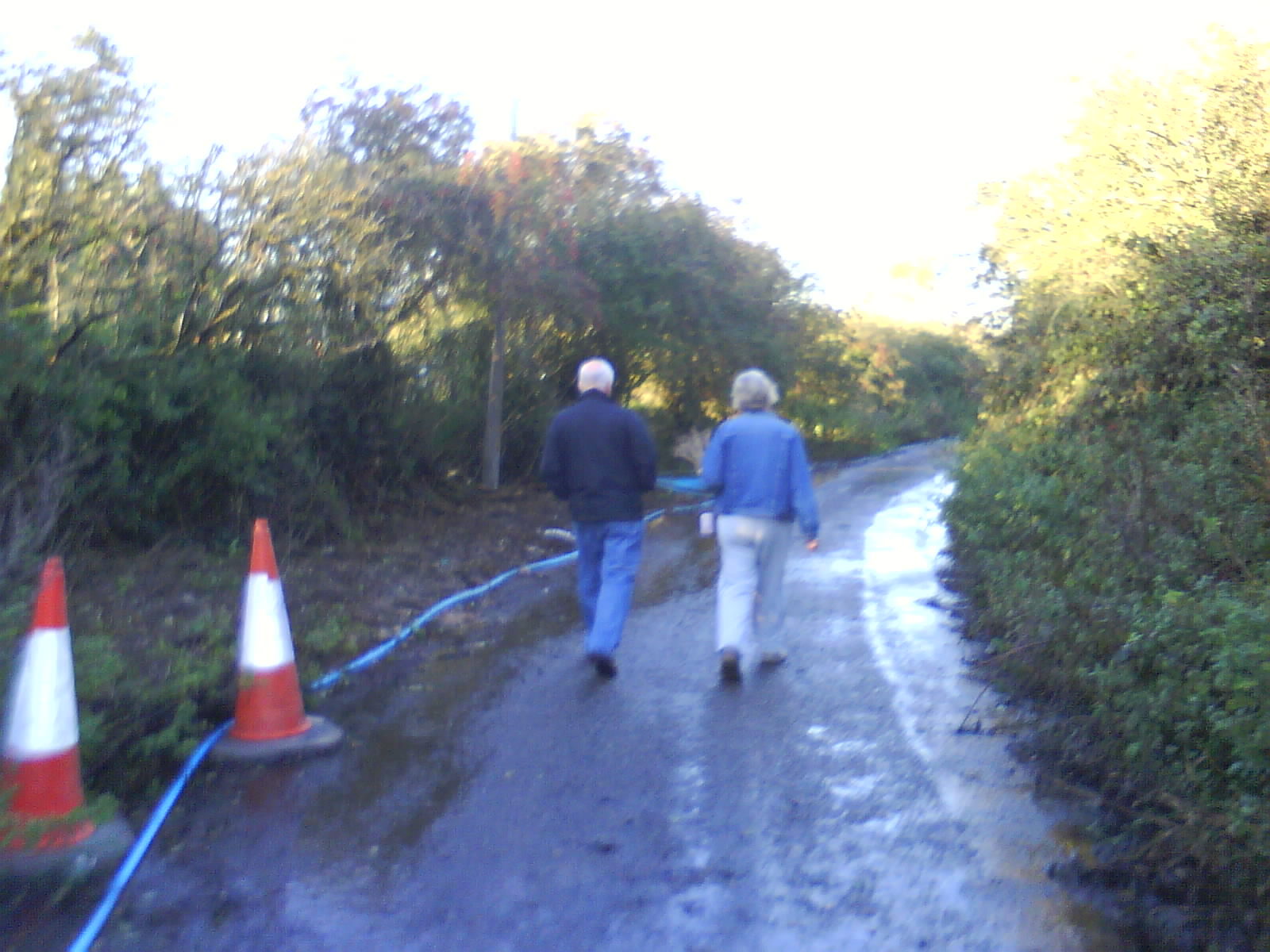 Past mysterious runes on the road. Past the sun. Past a bird squawking at me. My dad said I could go on without them. (Hence my Ok) Not sure what made me giggle. Then there's cones and a big hole. My dad shouts "Is that a hole at top of turners hill?" to which I respond on the video. Not sure what my mum said to provoke the "charmed response" but it was probably rude.