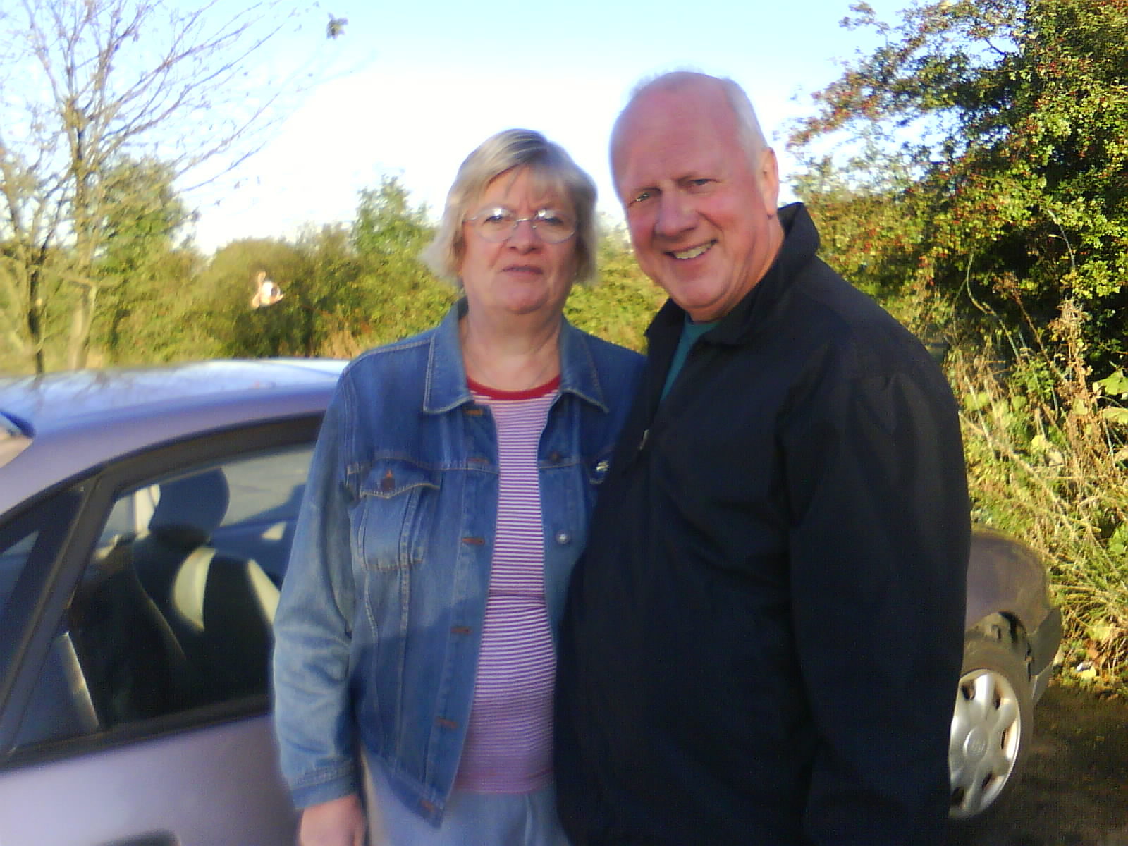 Mum and Dad by the car.