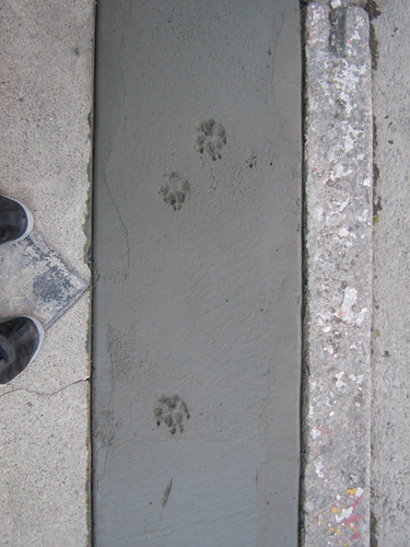 Koyah and I were cracking up laughing because Poncho seemed so stoked to be walking in wet cement.