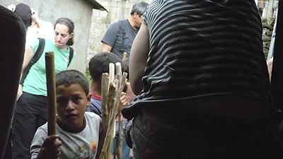 As the door to the shuttle opened a dozen boys came up with all the walking sticks they could carry shouting, "Stick!!! Stick!!! Stick!!! Cinco Quetzales!!!" We all politely refused. One especially sad looking boy approached a couple of tourist who we later became friends with and wound up bumping into in almost every town we traveled to…"Stick?"