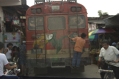 "Bus Station" Those old school buses are known as "Chicken Buses"