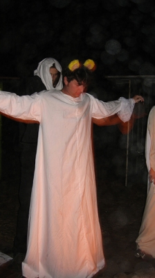 Anna Busted ass on this one… without her I don't think it would have panned out. I would have been happy with just a hole in a sheet but she was set on full ceremonial garb… and so it was! Thanx Anna!