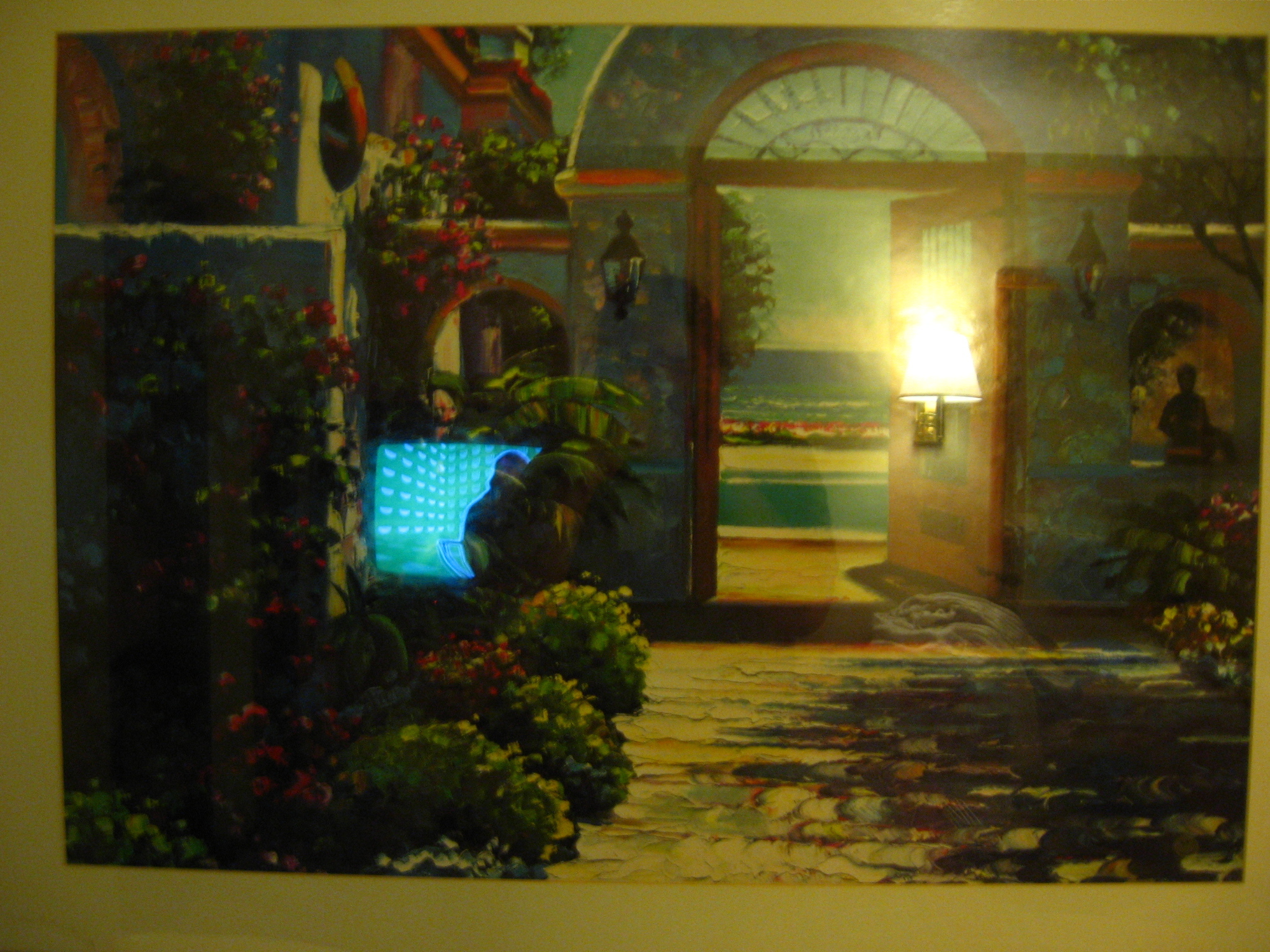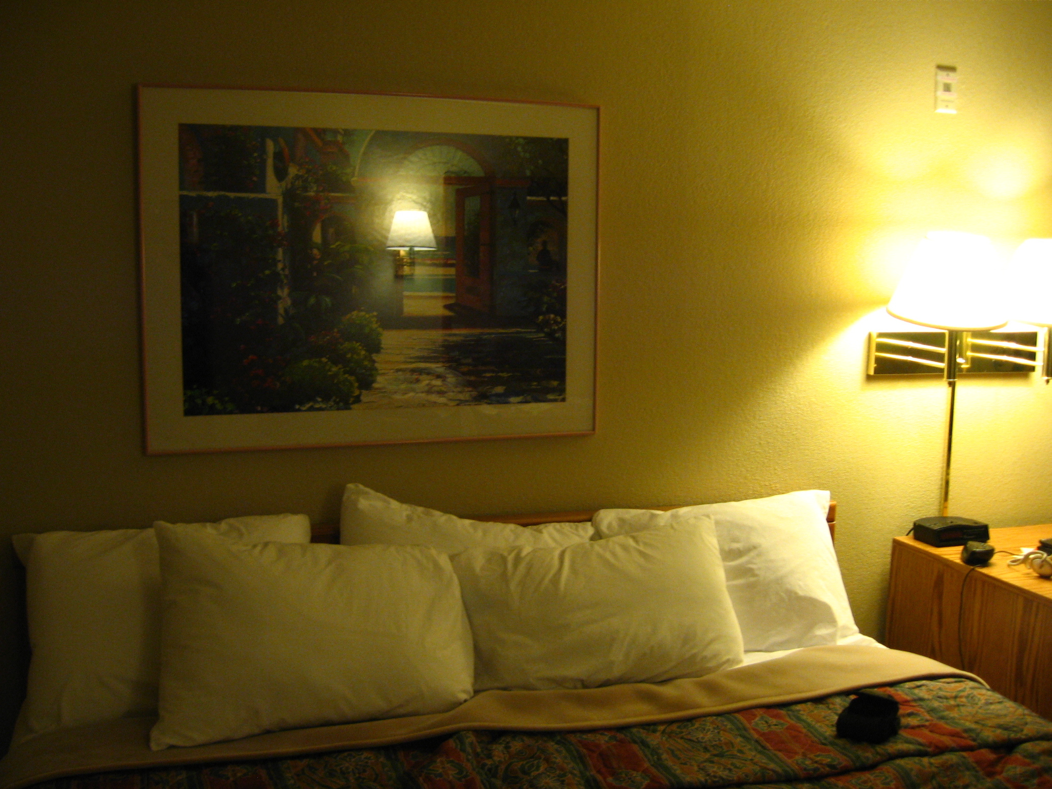 I glanced up at the print hanging over the bed and peeked behind it.