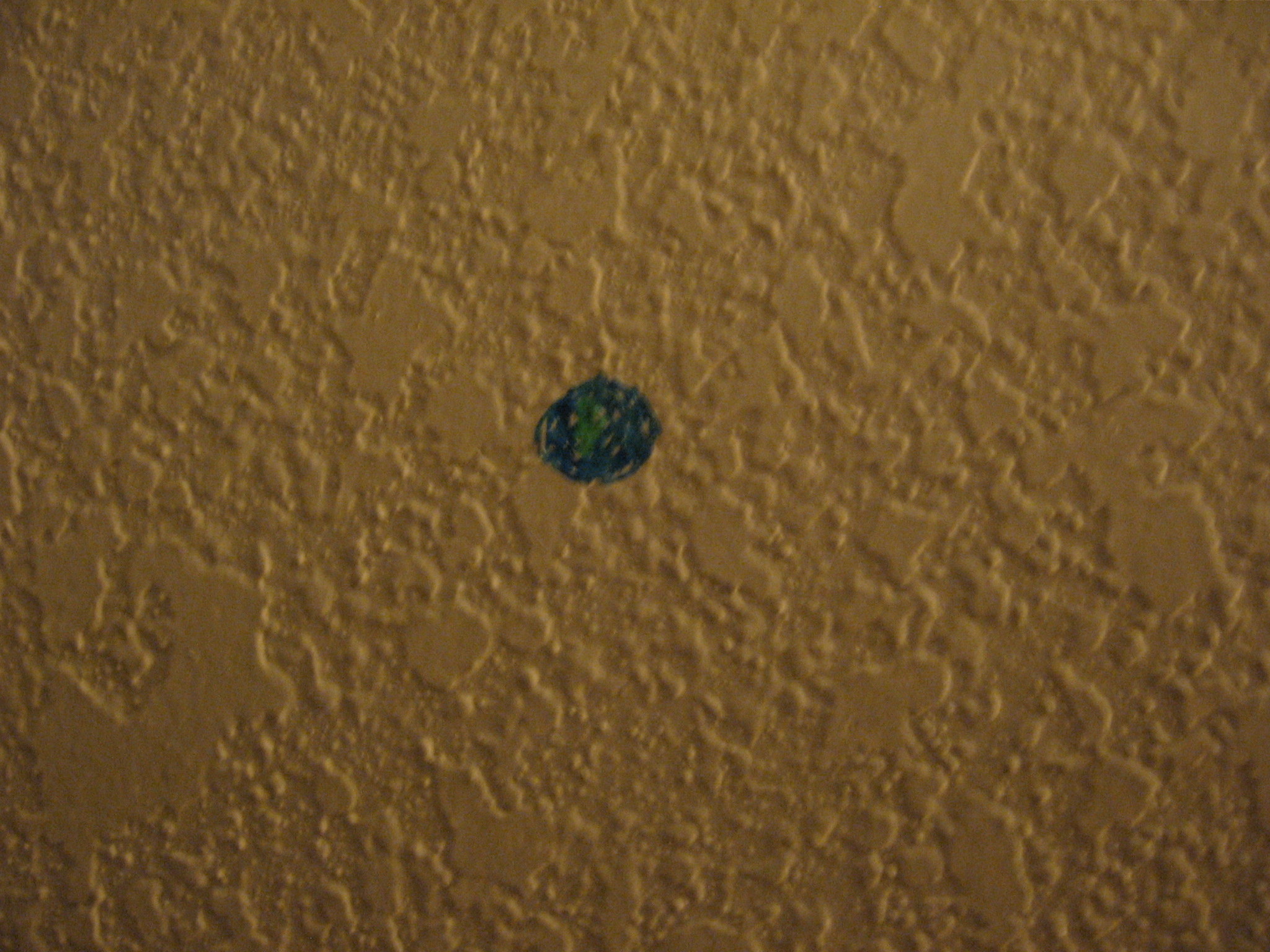 A slice falls, tumbling under the air conditioning unit. Reaching under, I find something scrawled on the wall just above the floor.
