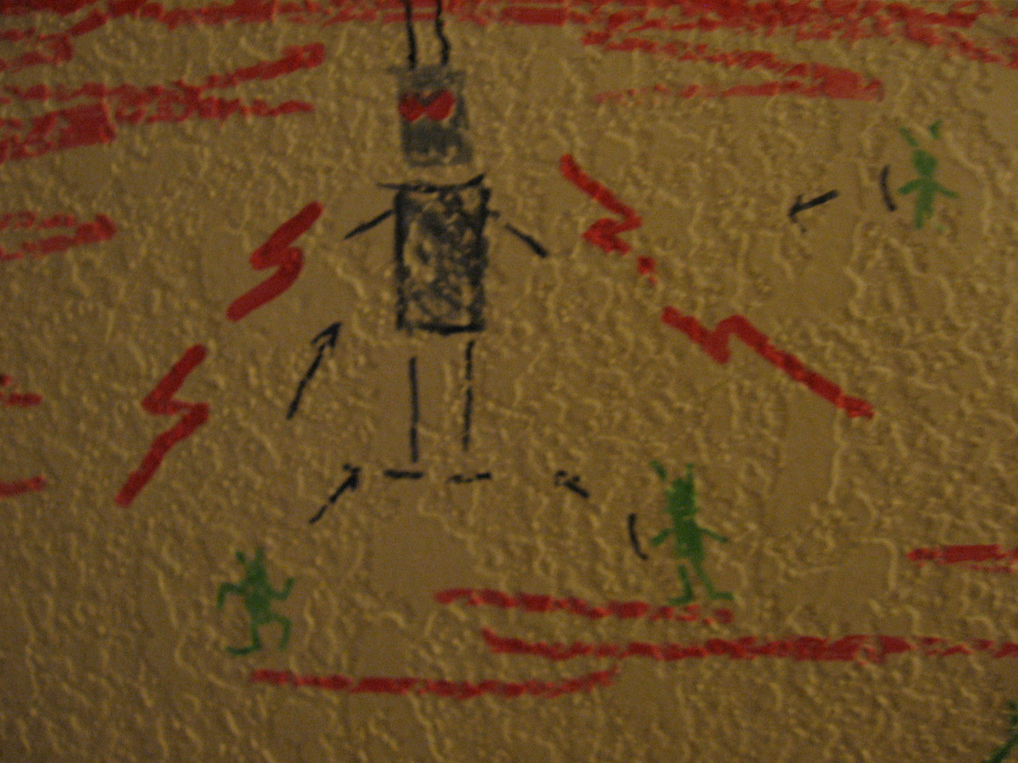 I was sure I had seen something like these glyphs before. That's definitely a robot. The little green man at the bottom right, what was he?