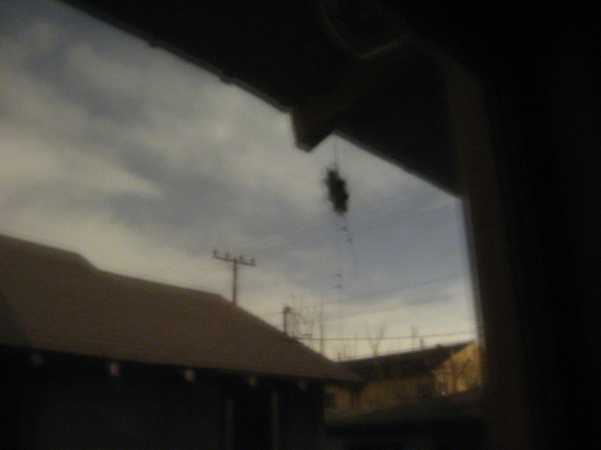 From the kitchen, I can look out into the living room, I can see out into the street. I can see my landlord's house across the street as before. I can also see a police cruiser pull up to the intersection just outside the front window, and linger.