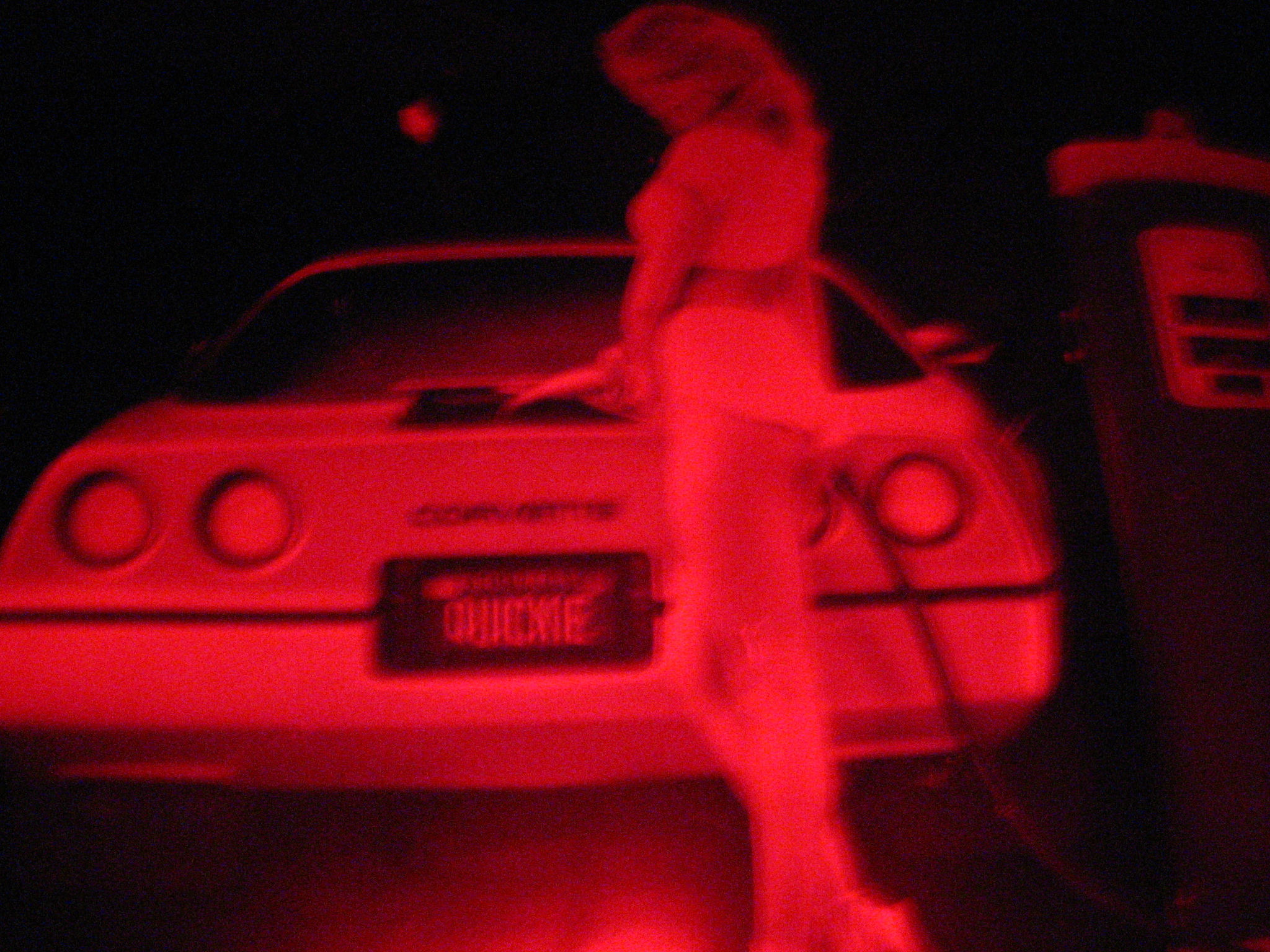 I wrap red tissue paper around the lens of my flashlight, slip my duster back on and I'm out the door.