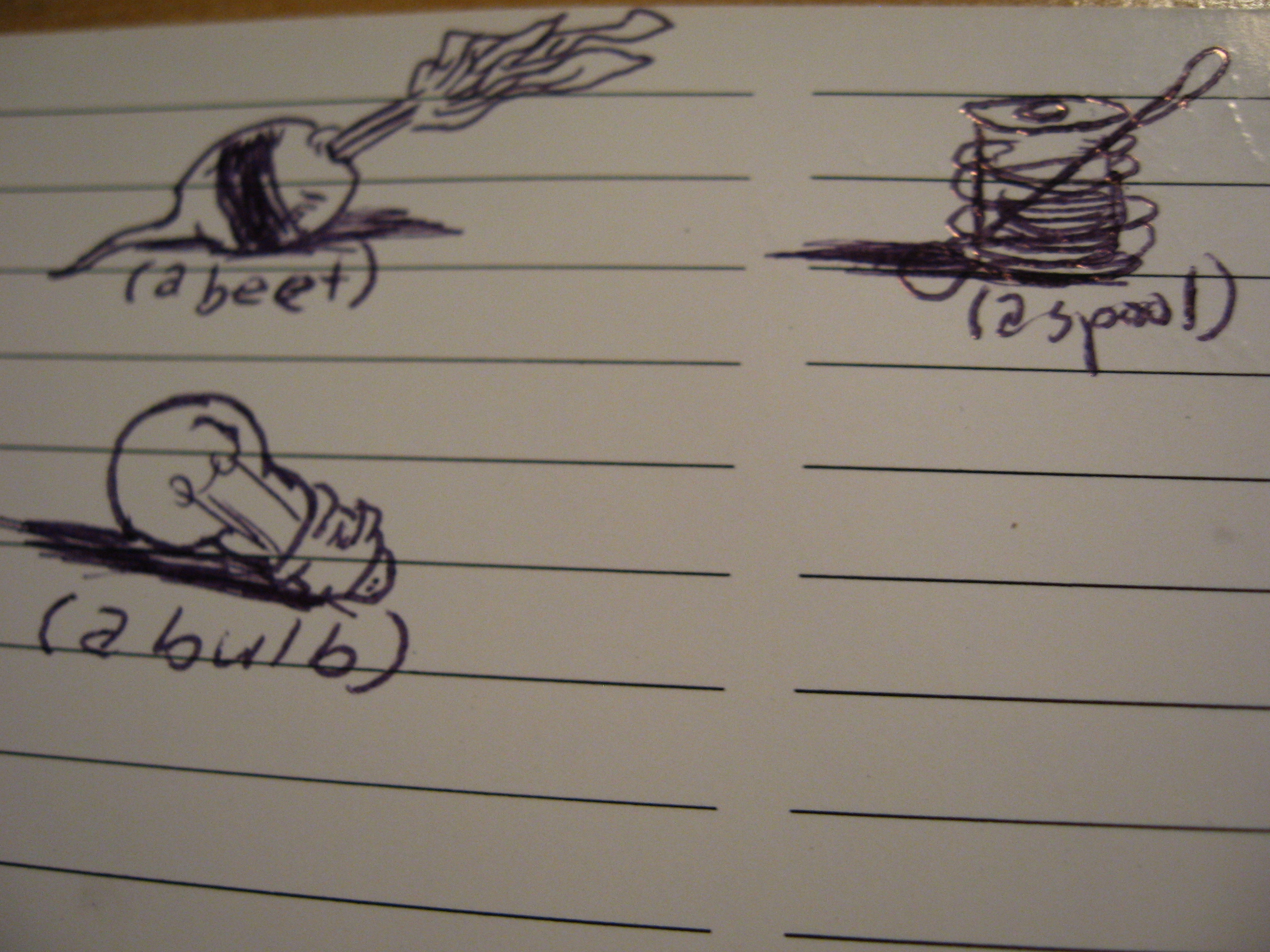 There are things that I've always enjoyed drawing. These are light bulbs, eyeballs, and rocket ships. So that is what I used to decorate the labels.