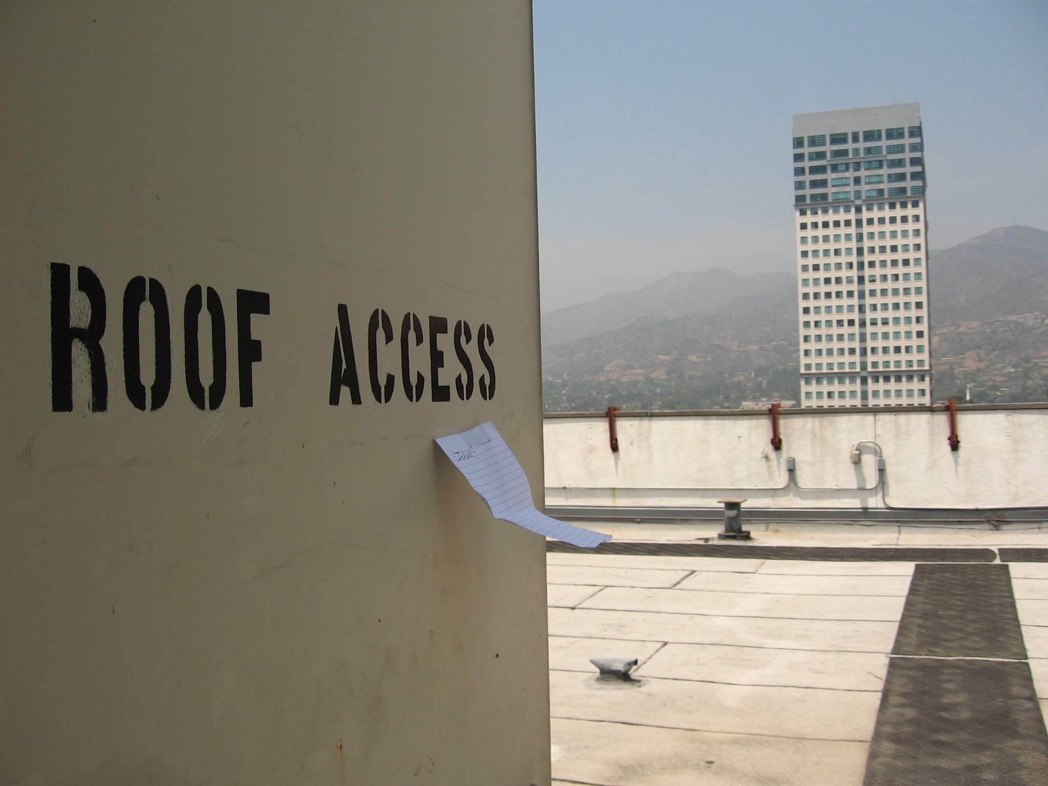 Checking their directory, I didn't see a listing for the Xena club. So I did what anyone else would do, climbed up to the highest level of the building and left my note on the roof.