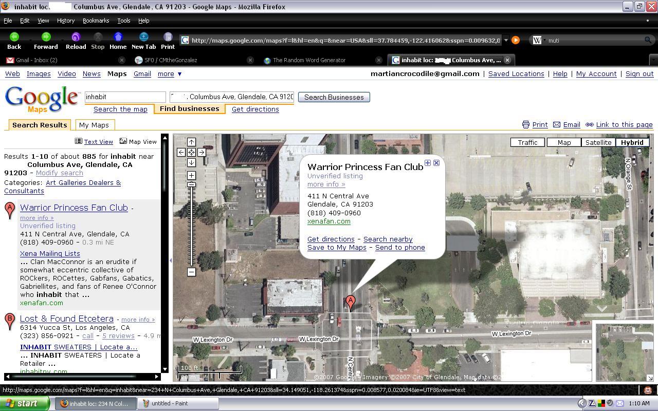 I'm not sure how google maps interpreted this to direct me to the Warrior Princess Fan Club.