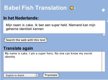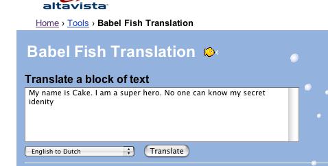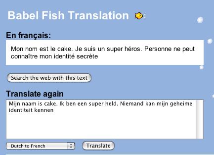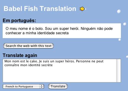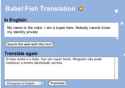 I used the altavist.com babble fish translator (which i've been using since my 7th grade french class), and the results were not a humorous as I thought they might be. Damn you altavista for being such an accurate translator!