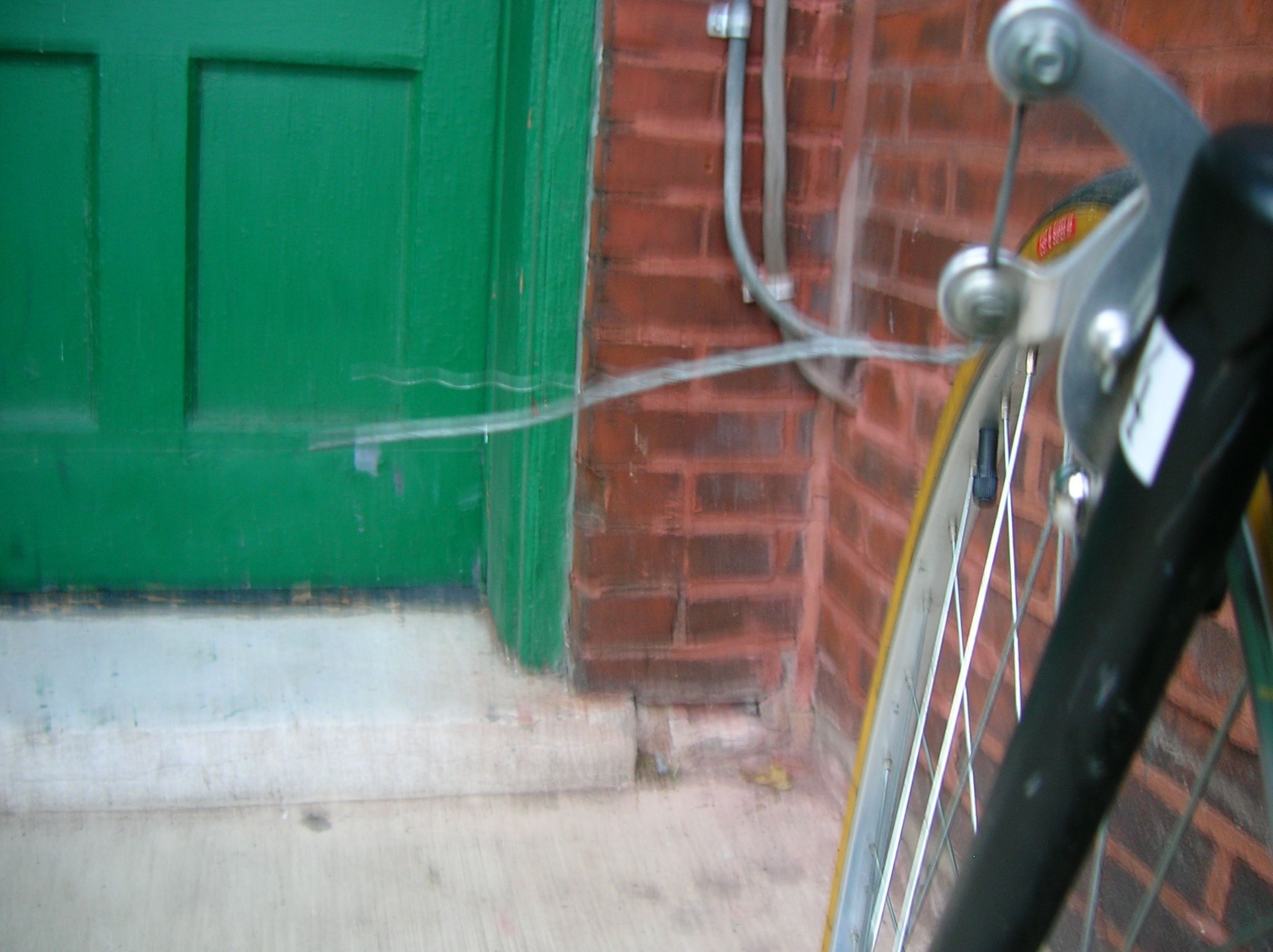 I gave my friend a ring and told him I'd like to borrow his death trap for an hour or so. He was puzzled by the fact that I actually wanted to ride it, but he agreed. I walked down to his house, grabbed the bike, and gave it a quick look over before I jumped on it. After looking over the bike, I realized it was in much, much worse shape then I had thought. The chain was stretched and it was missing a brake. The pads on the one brake were worn and improperly toed in. Neither of the wheels were true, with the front being the worst. The brake cable was frayed. Finally, it made a horrible creaking sound with every full wheel rotation. I sort of laughed to myself, mumbled something about suicide, but decided to press on. The point of choosing this bike was to make the journey more interesting, and it will certainly do that.