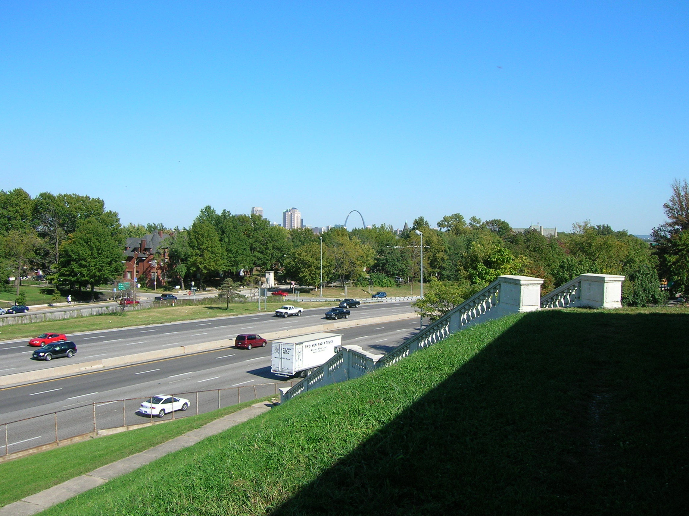 This park is in South City, fairly close to my house. You can see my goal, the Arch, in the distance from here. I'm standing on top of the hill that holds the old water reservoir.
