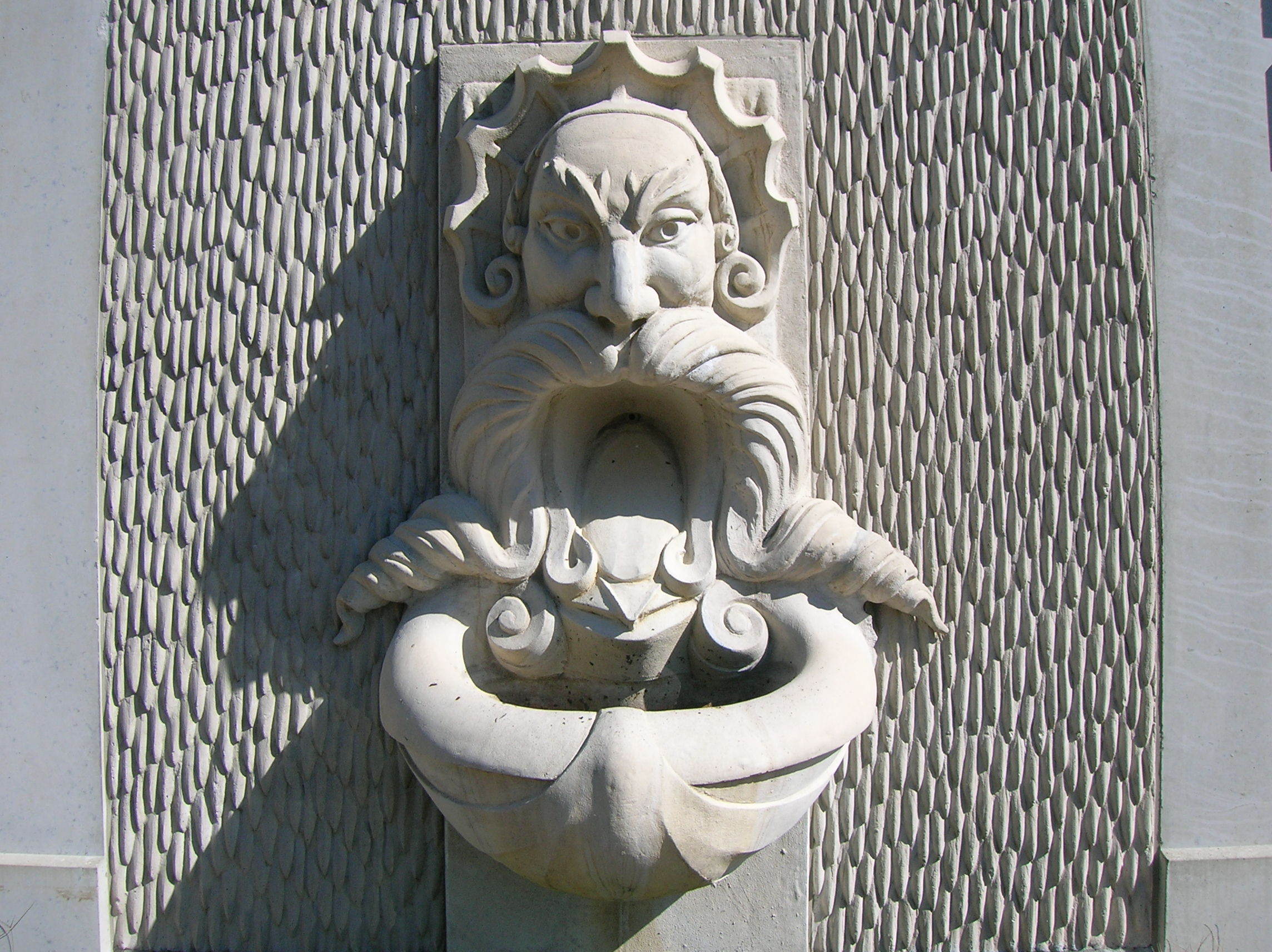 This is a fountain on the side of the reservoir. Water used to spill from it's mouth at one point.