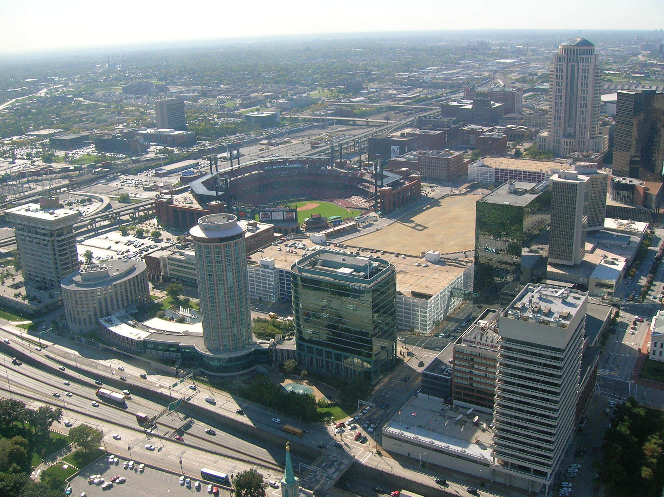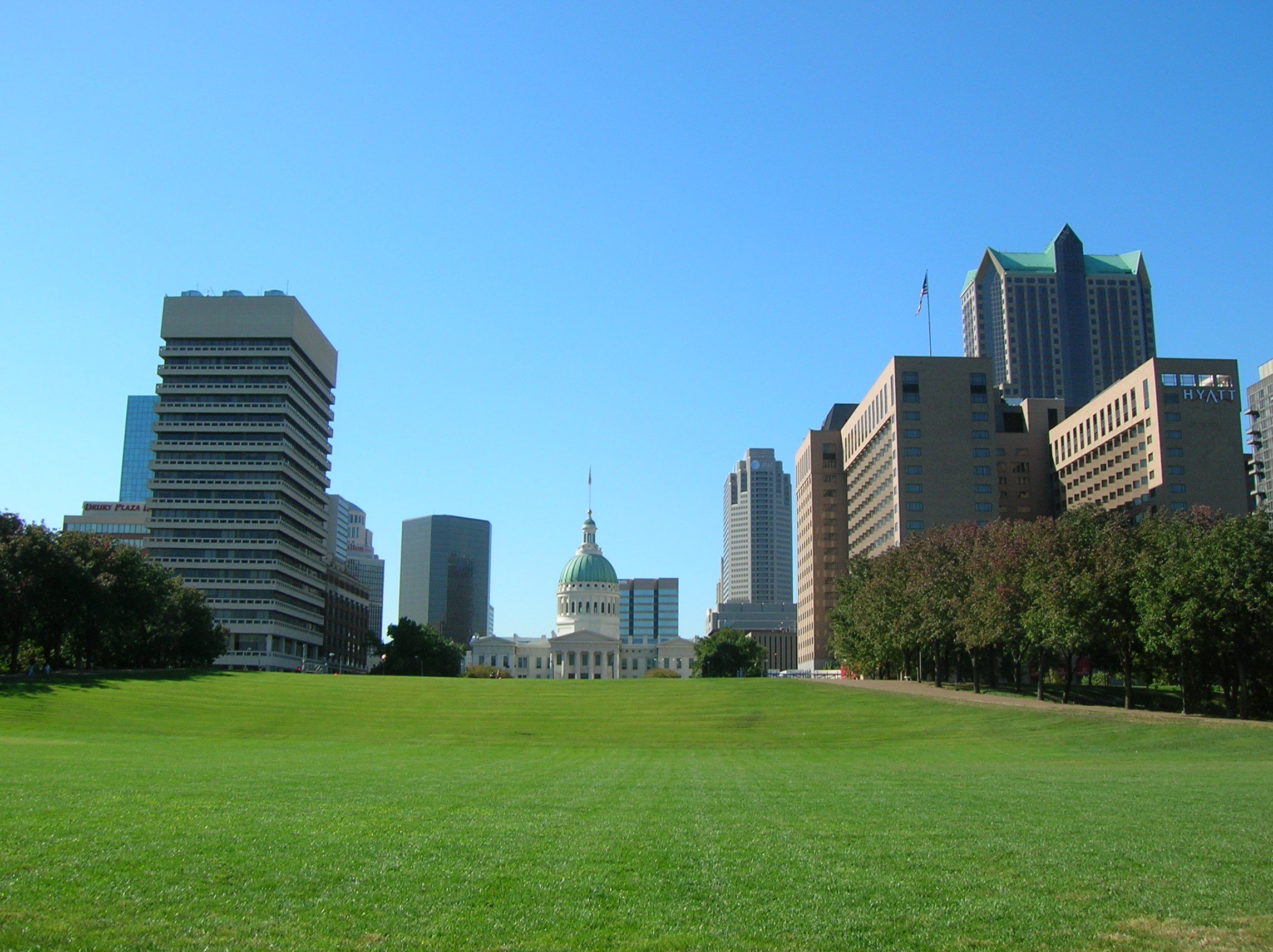 A view from the otherside of the Old Courthouse. I like how it gets framed by the Arch, with the fountain and all.