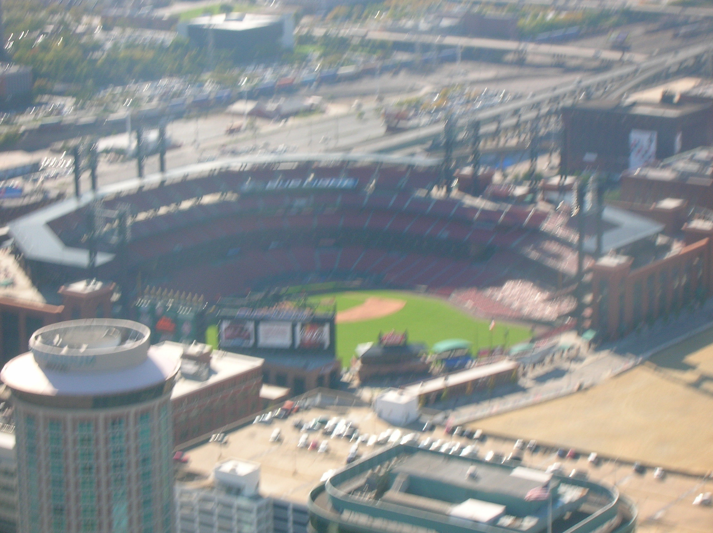 I took this picture laying on the grass directly underneath the Arch. You can see the windows barely at the top.