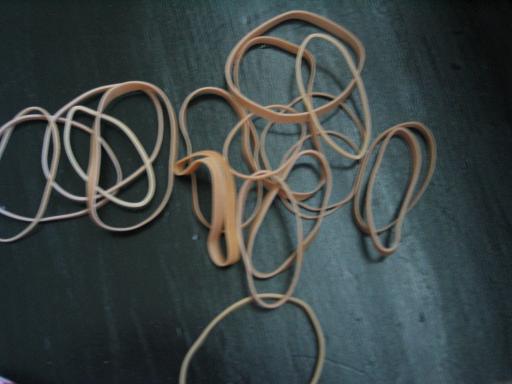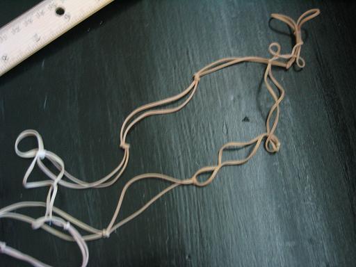 That still didn’t seem to be enough, I needed something that would make it more convenient to carry, so I made a loop with the rubber bands - kinda the way a lot of little kids make necklaces with them. And I attached the sheath to it. So that I could carry it over my shoulder.