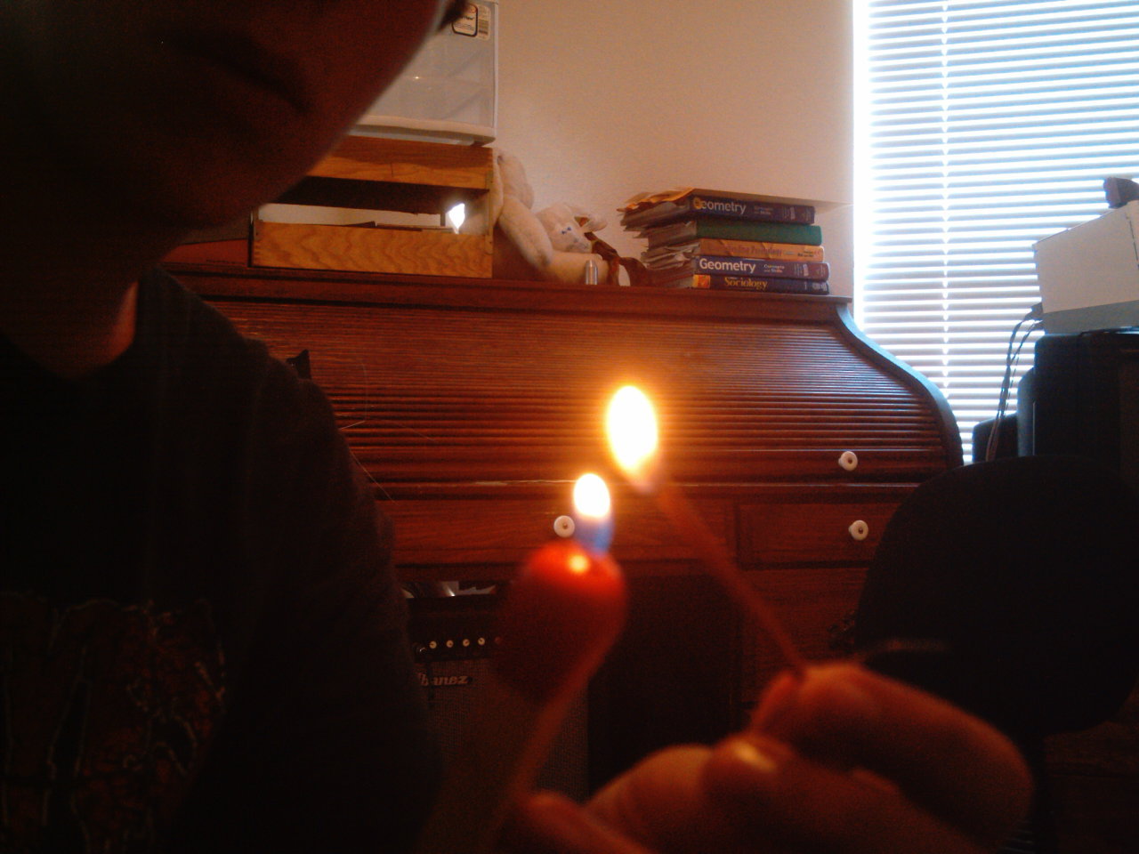 next i secured the incense stick between the sides at the bottom of the loop on the paper clip, and lit it.