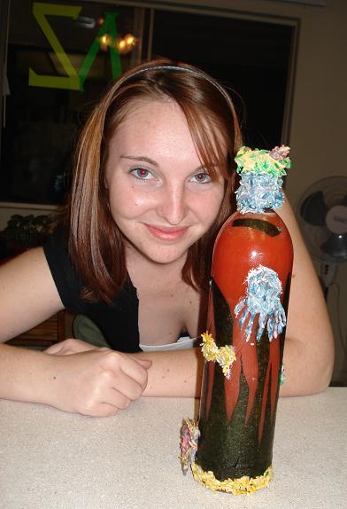 Jokingly, the meaning of the bottle of tomato juice with the under-the-sea theme is "The Feminine." Women are connected with the ocean in classical literature and art, such as Venus and the clamshell for instance. The tomato juice of course represents menstration. Yeah. Ha.