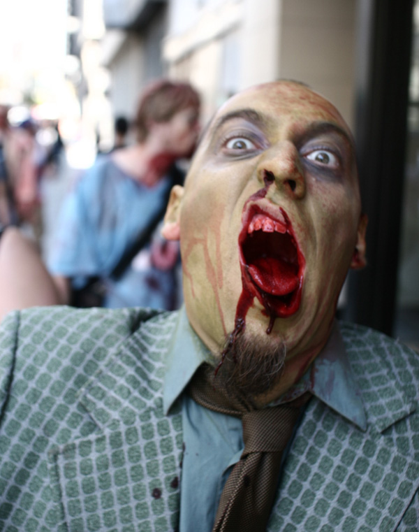 Zombies invade Union Square, san francisco! Tourists run for there lives!