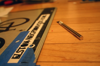 The sign was stripped of the existing vinyl lettering in February 2008, and new vinyl letters were cut by hand.