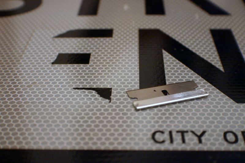 That is incredible. Could you post more information about how to strip and cut new lettering (and affix new lettering) for these signs -- I can't beat you, but I'd love to copy your method!