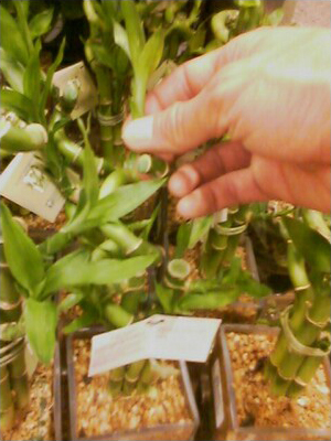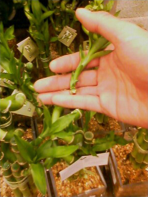 I plucked four shoots from various potted 'lucky' bamboo at the Home Depot down the street. Contrary to my initial assumption about this plant, 'lucky' bamboo grows very, very slowly. Consequently, this project took quite a lot longer than I had intended. However, I am no quitter: after one year of documentation, I am hereby posting my results.