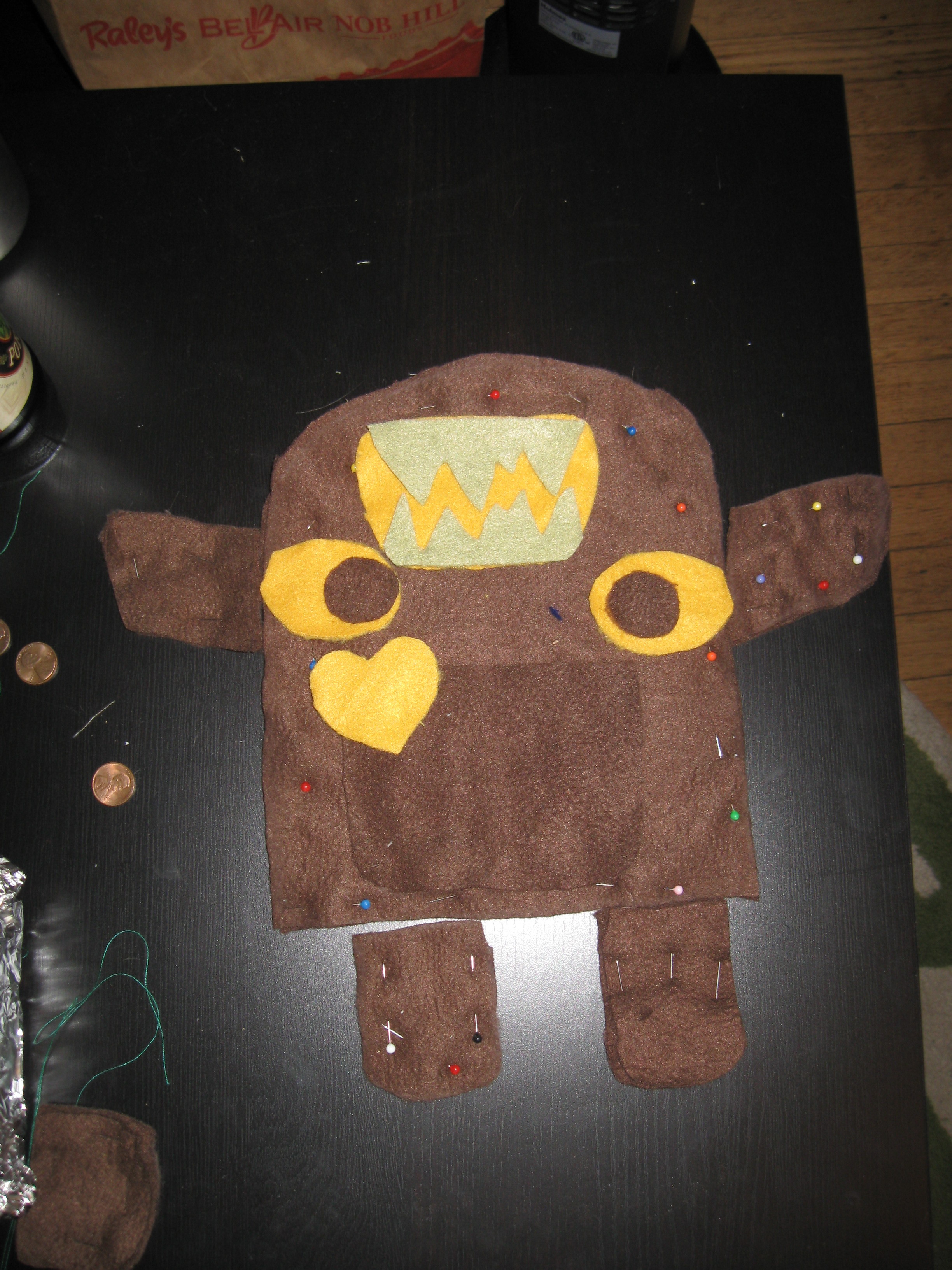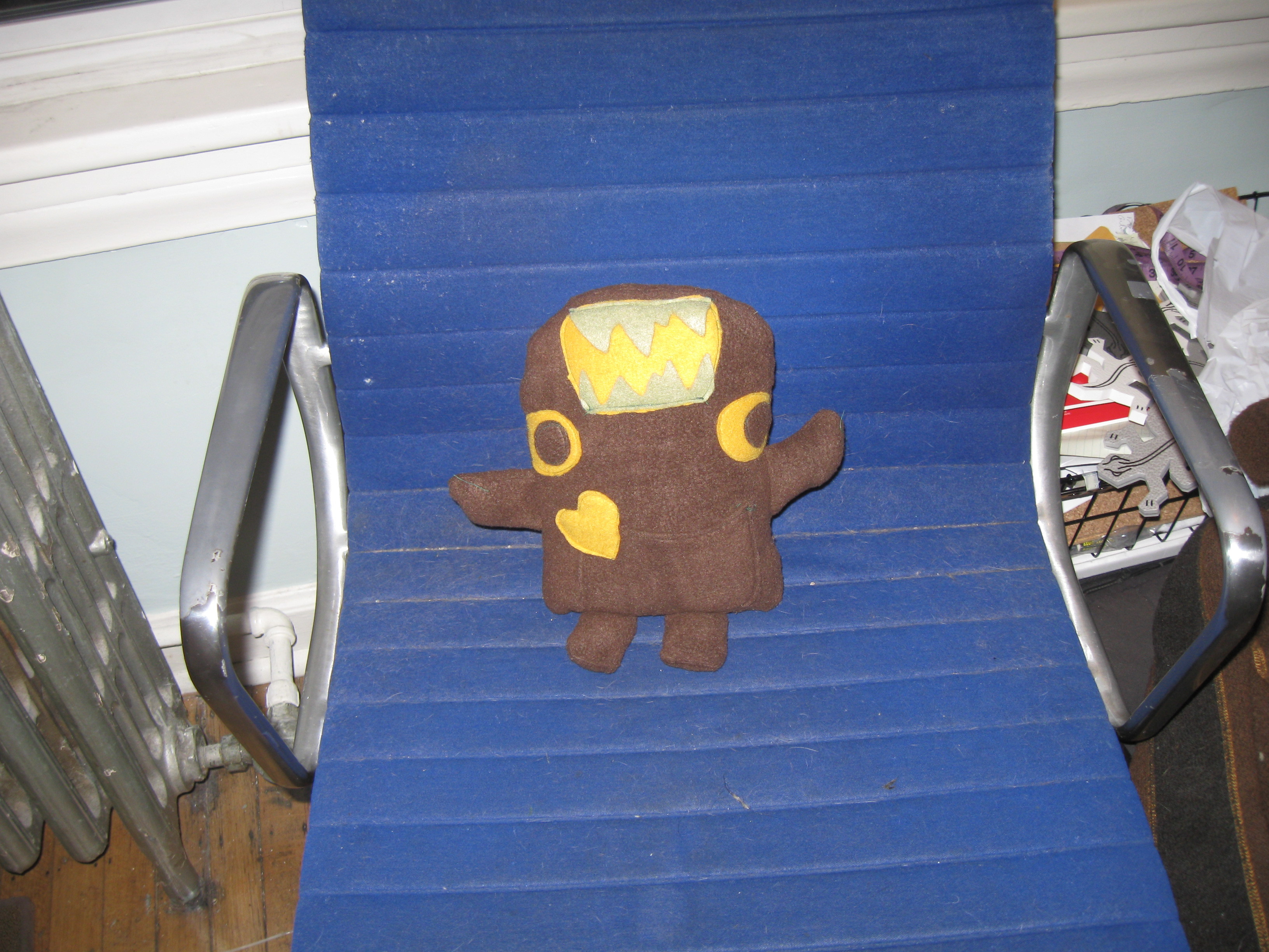I've made many a stuffed dinosaur in my day, so I wanted to try something new for this task. Originally I wanted to make a padded brick cozy kind of like this. But then I found Domo.