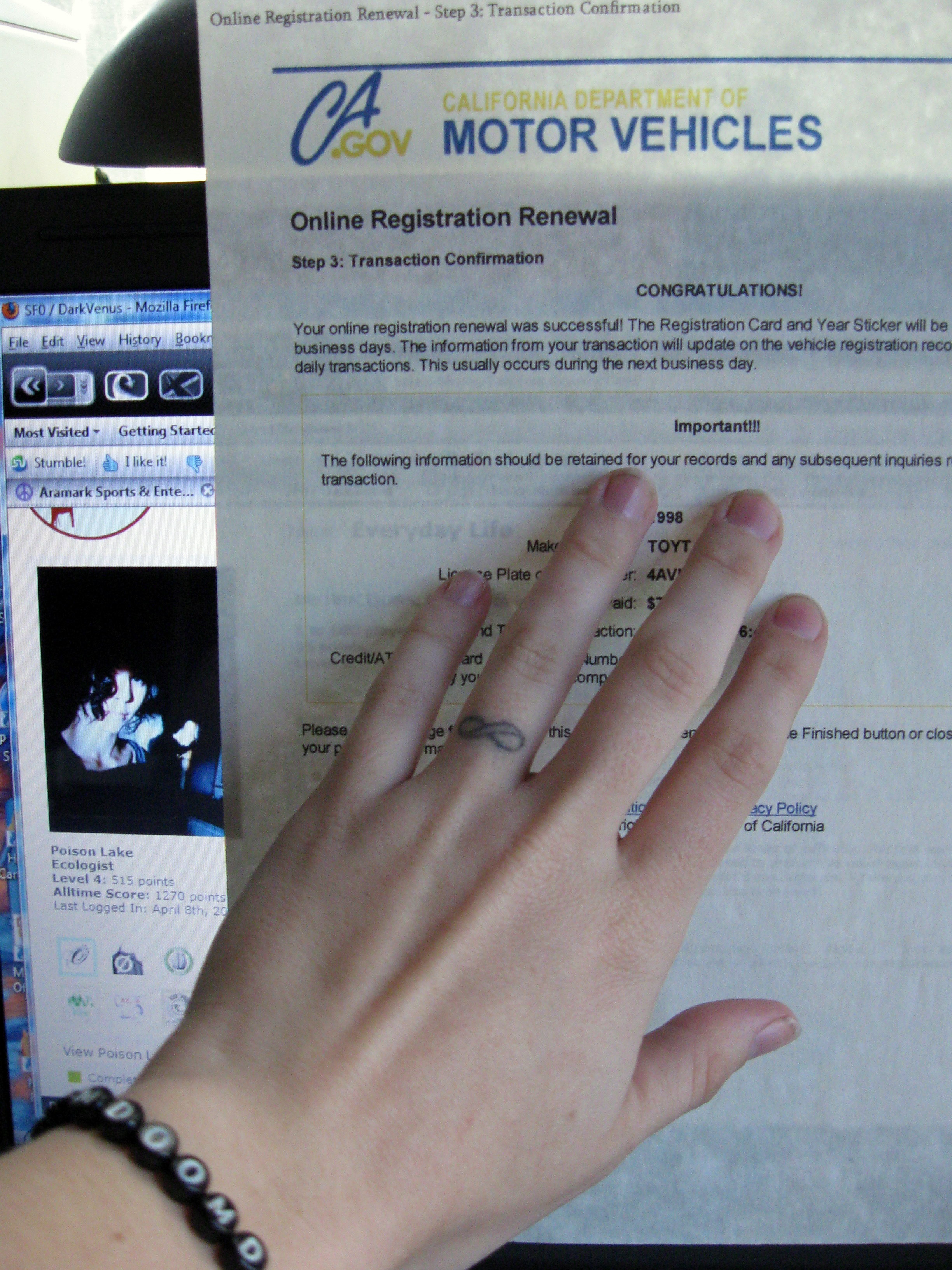 I slept through class, so naturally, it's a perfect taskportunity. Today I: slept untill 11:40, spent a few lovely hours with David, bought a new bra that matches my tattoo (at long last), paid my car registration, secured a job interview (here's the posting), & dyed my hair (if I were cereal my packaging would say, "Poison Lake, now with slightly more black!"). All fairly mundane...As I'm typing this, H.P. is trying paw the cheese off of my mashed potatoes. That's not a metaphor, I'm eating dinner. Plans for the rest of the night include: math homework, watching lost, & possibly some sketching.