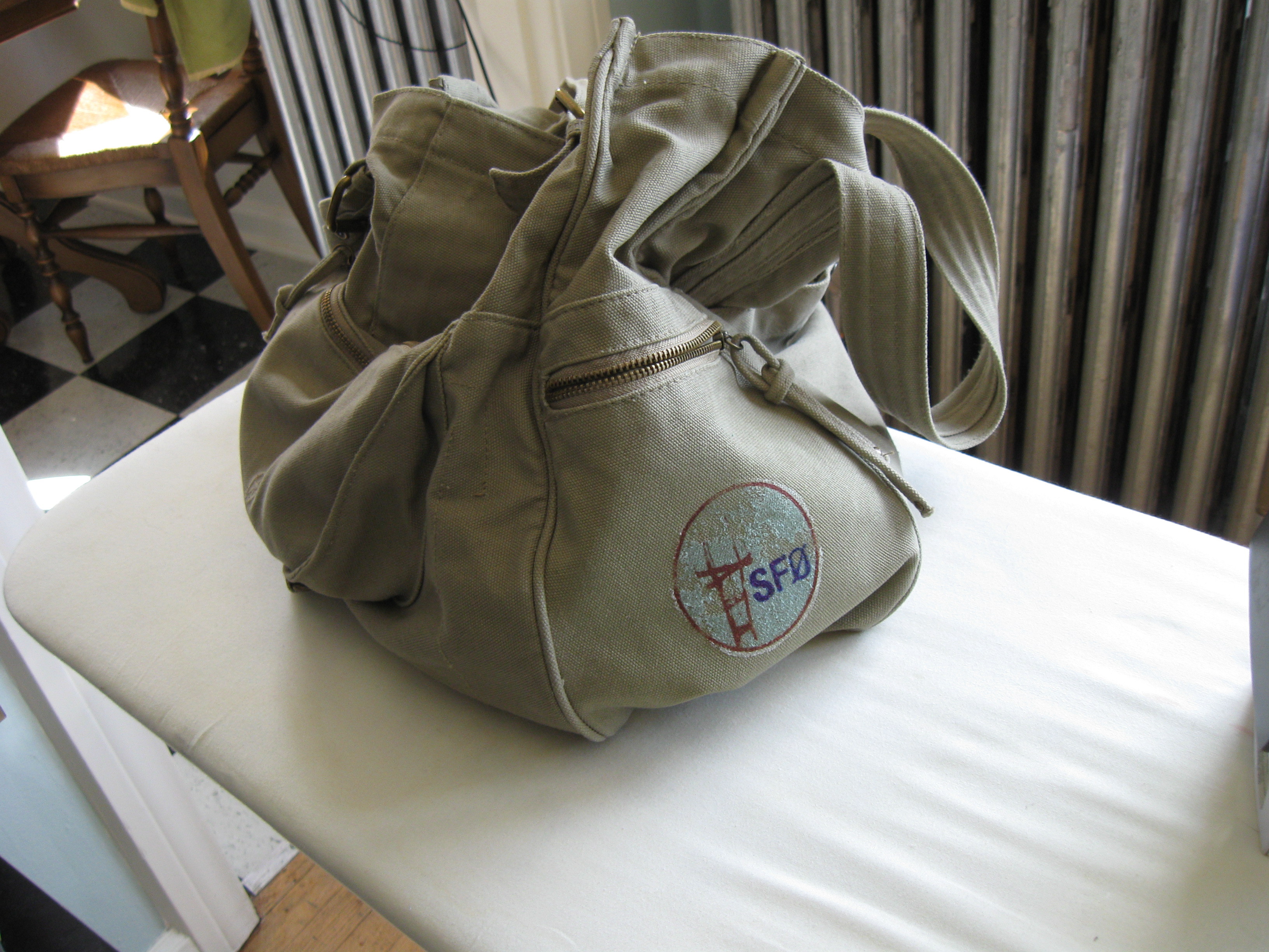 I was only planning on printing one transfer, but I didn;t want it to be huge & once I got it to the size I wanted, I realized that wasting an entire sheet on one transfer would be pure silliness. So I printed nine. Unfortunately I forgot to reverse the image, so I wasted a whole sheet anyway (unless anyone wants nine readable-in-the-mirror biome logos ). I printed another nine, but they came out slightly larger & the resolution was not so wonderful, so I did one more sheet & after 18 imperfect transfers, found success!. I also did a sheet of SF0 logos, for added awesomeness & was off to the ironing board. After finishing the shirt I decided I wanted a more constant sign of my allegiance, so I stuck one on my purse too. The letters came out a bit wonky on that one, but sharpie saved the day.